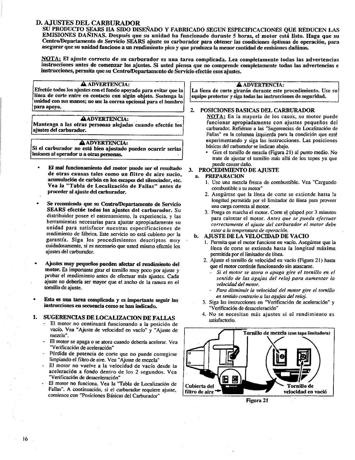 3. Desconecte la buj/a antes de Ilevar a cabo cualquier mamcnimienlo, exeeptt) para hi regulaci6n dcl