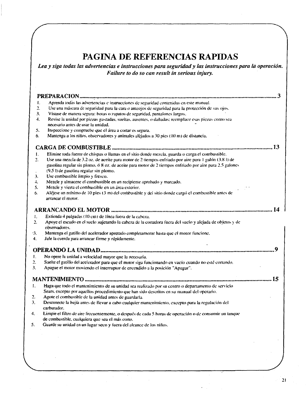 PAGINA DE REFERENCIAS RAPIDAS .............................. 21