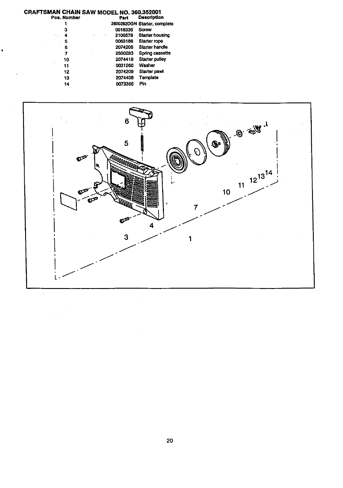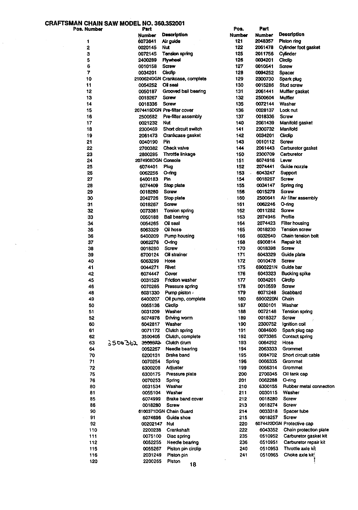 User Manual: Craftsman 360352010 360352010 CRAFTSMAN CHAIN SAW - Manuals and Guides View the owners manual for your CRAFTSMAN CHAIN SAW #360352010. Home:Lawn & Garden Parts:Craftsman Parts:Craftsman CHAIN SAW Manual