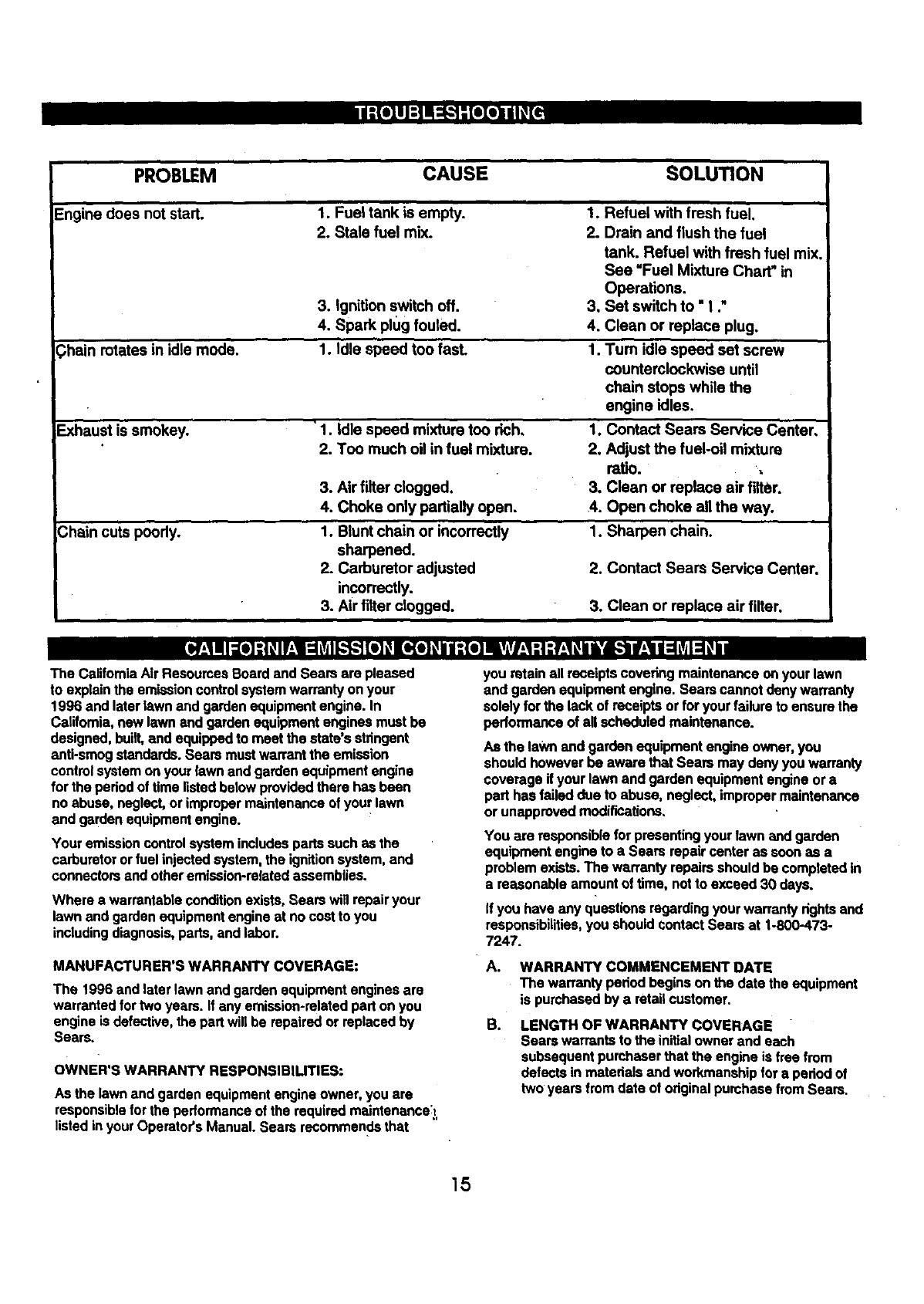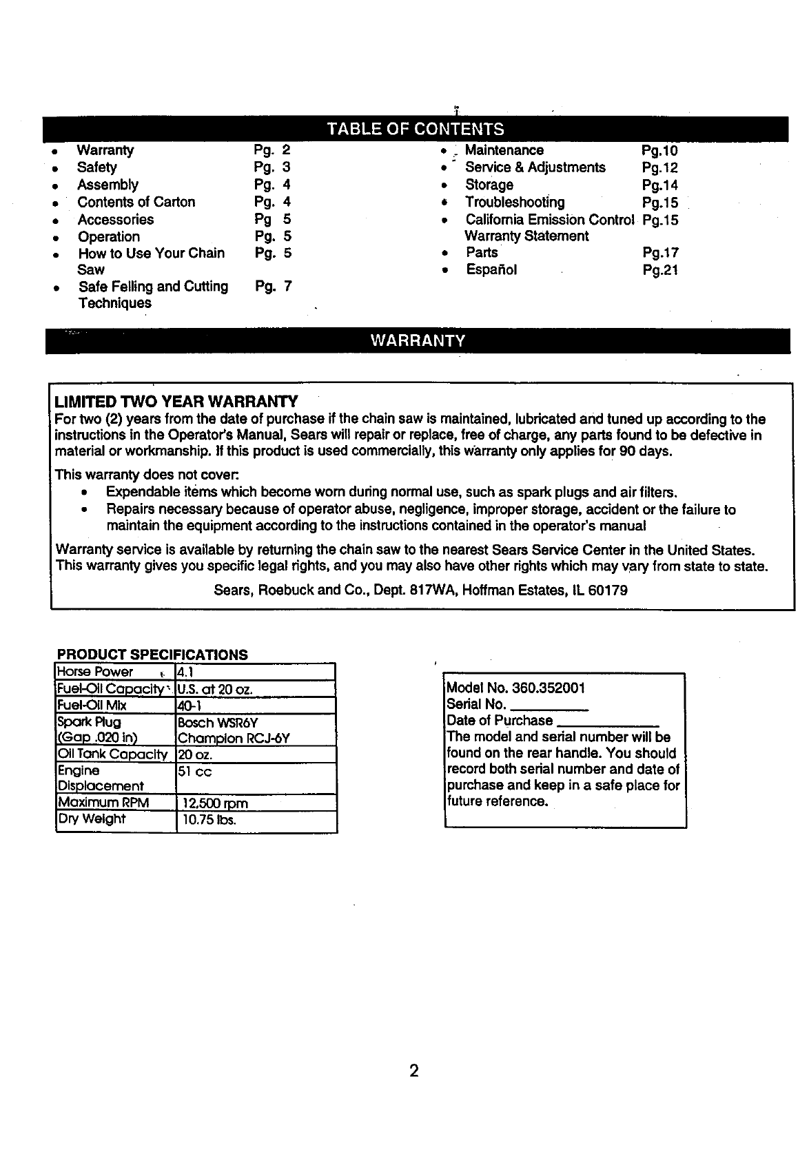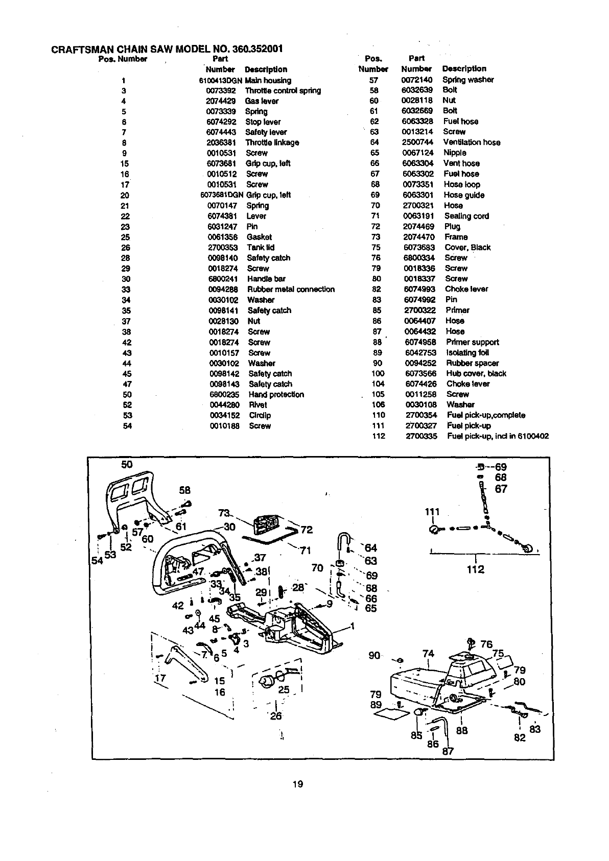 Craftsman 360352010 User Manual CHAIN SAW Manuals And Guides L9050106