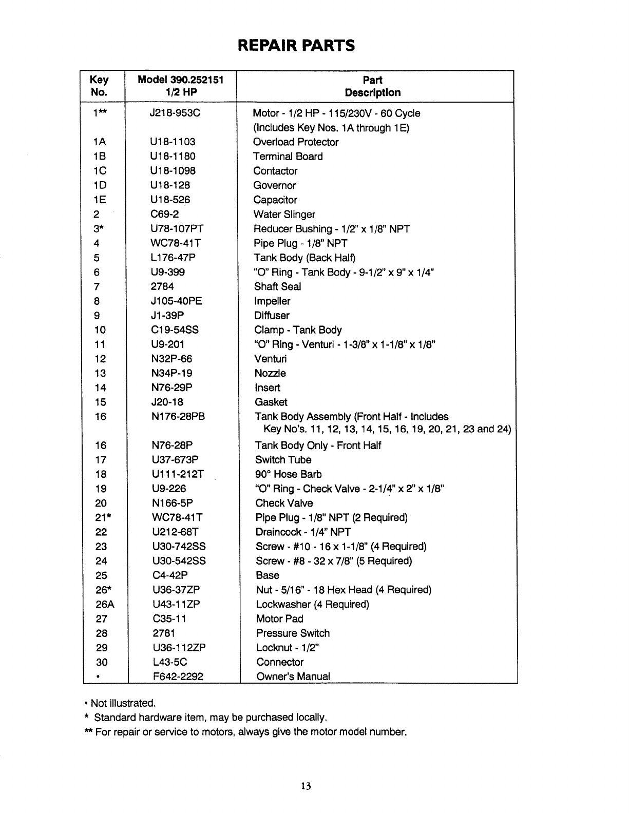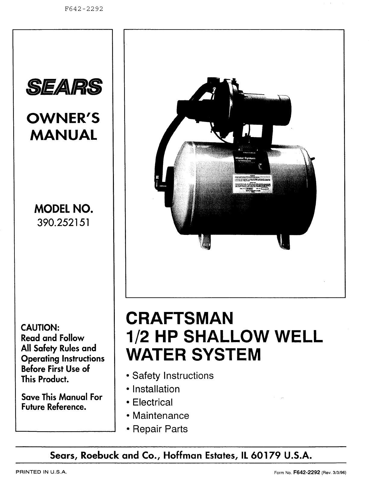 User Manual: Craftsman 390252150 390252150 CRAFTSMAN PUMP - Manuals and Guides View the owners manual for your CRAFTSMAN PUMP #390252150.