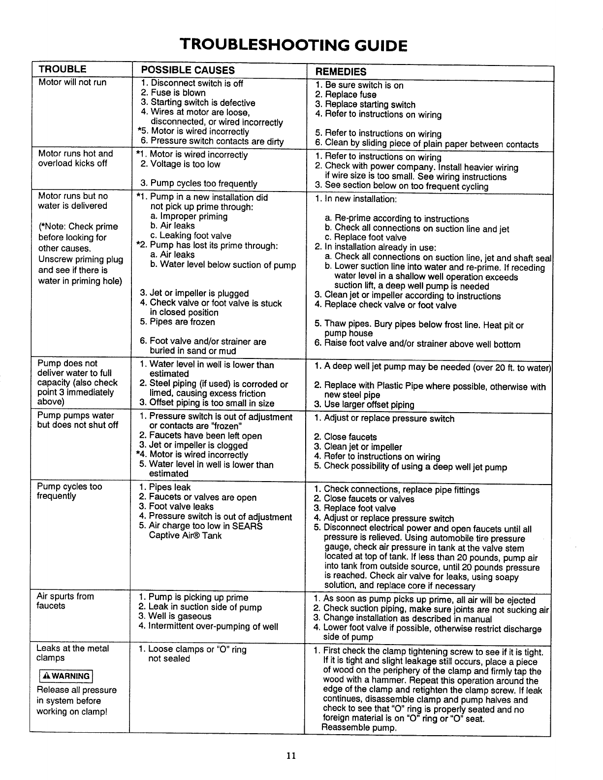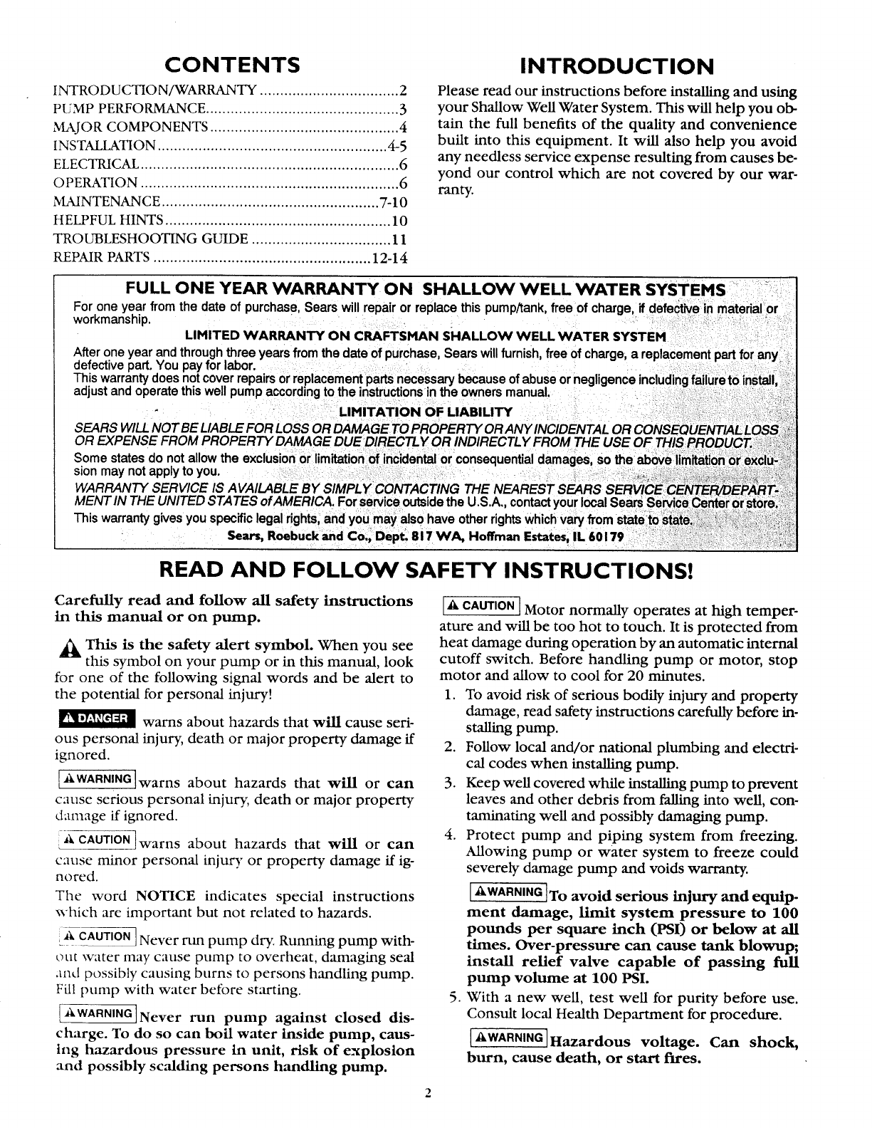 Craftsman 390252150 1505359L User Manual PUMP Manuals And Guides