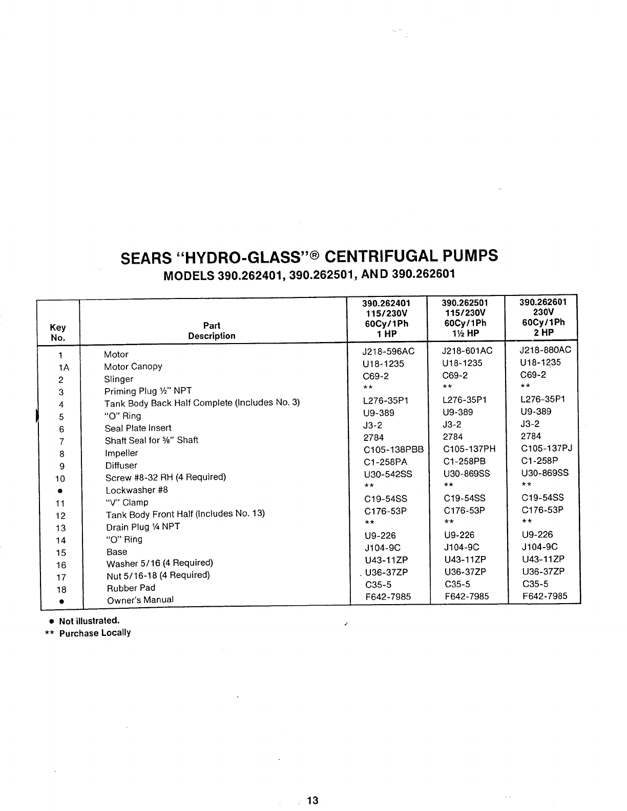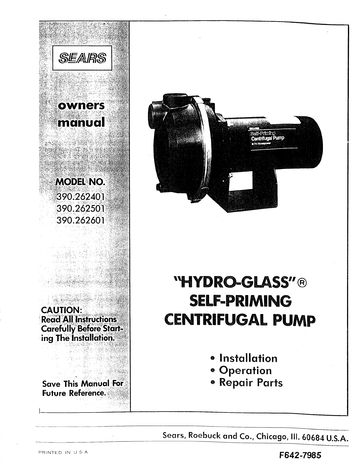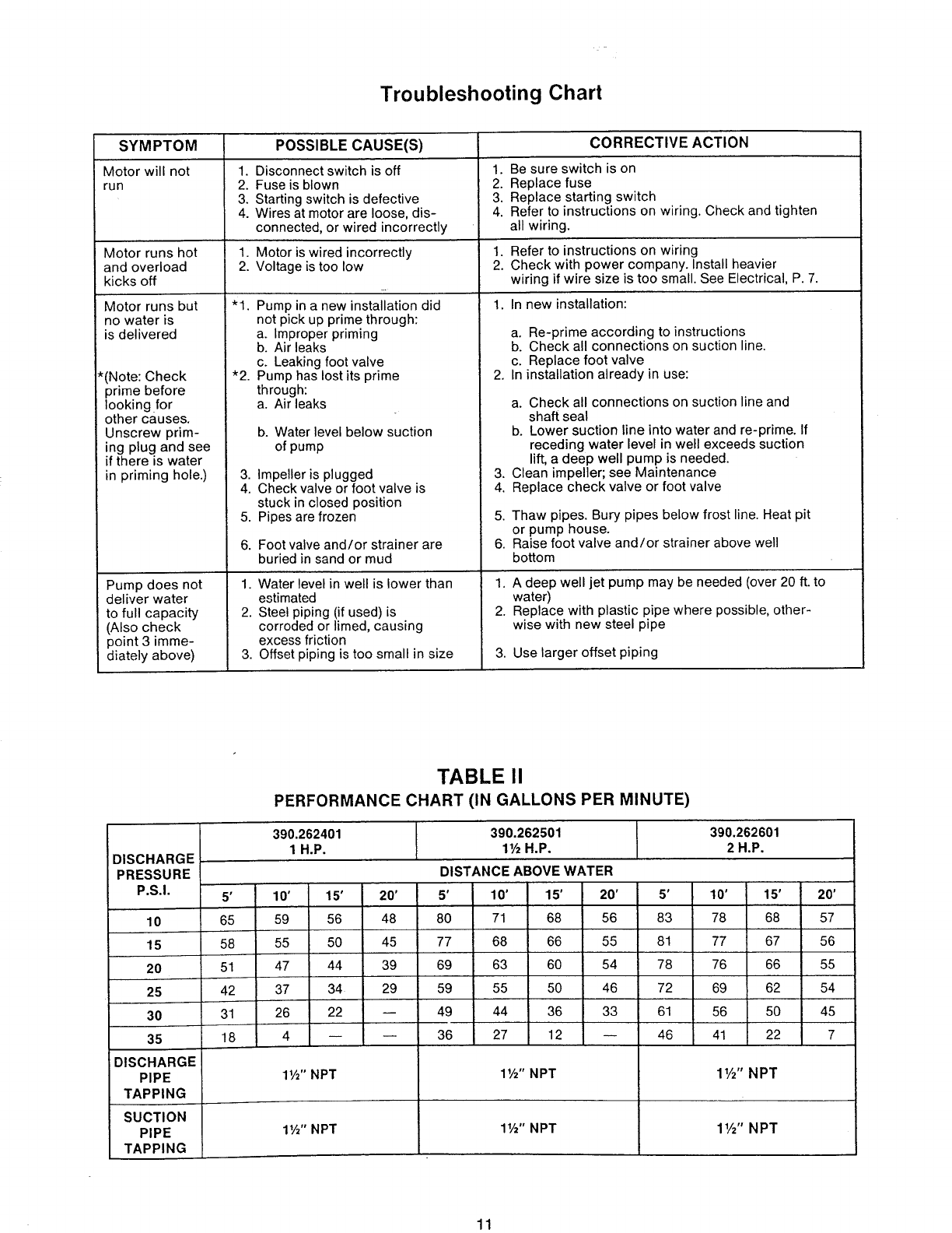 User Manual: Craftsman 390262401 390262401 CRAFTSMAN PUMP - Manuals and Guides View the owners manual for your CRAFTSMAN PUMP #390262401. Home:Plumbing Parts:Craftsman Parts:Craftsman PUMP Manual