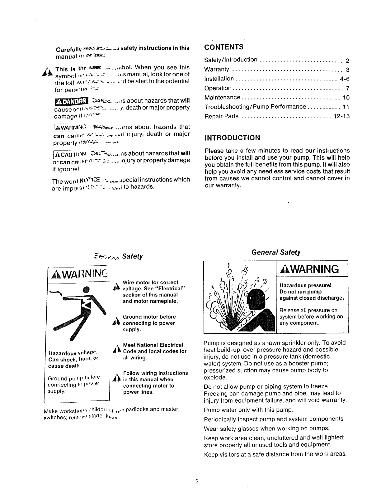 Craftsman 390262401 User Manual PUMP Manuals And Guides 1007050L