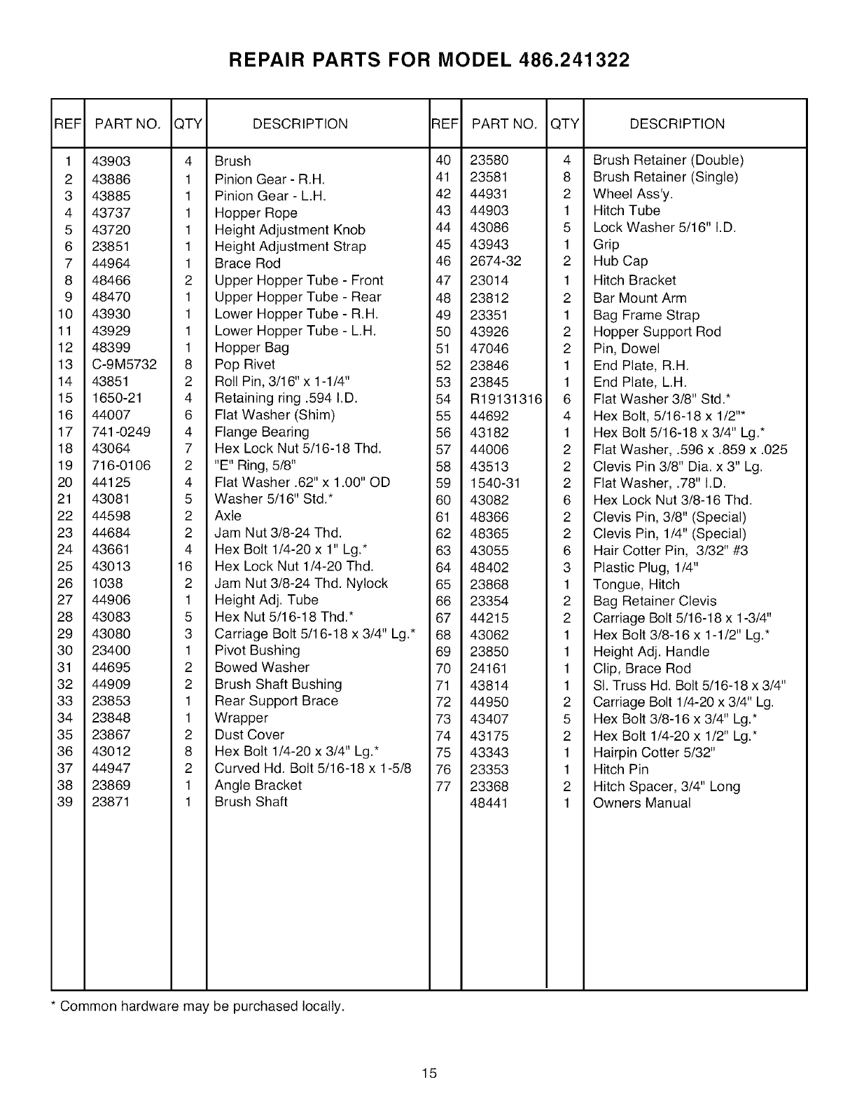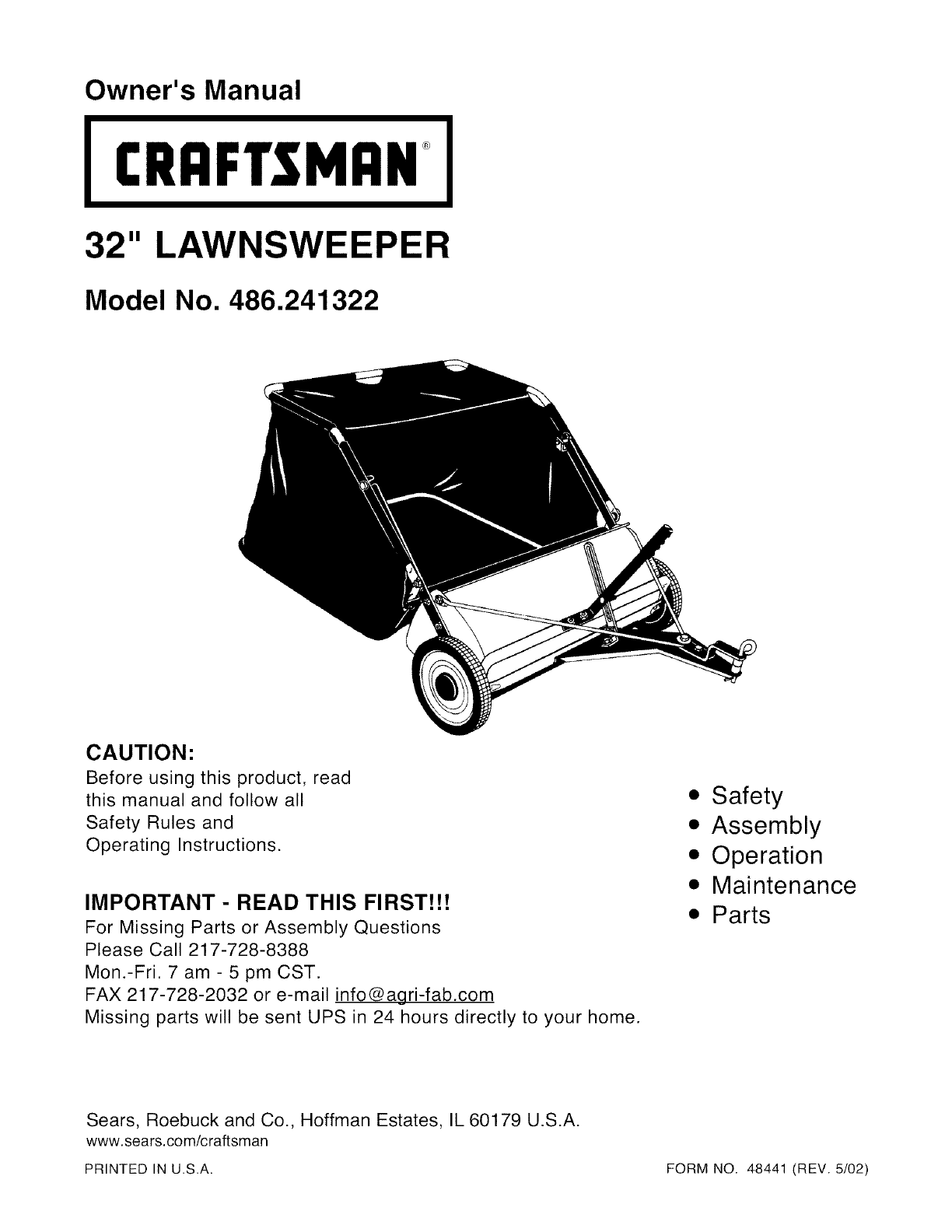User Manual: Craftsman 486241322 486241322 CRAFTSMAN LAWN SWEEPER - Manuals and Guides View the owners manual for your CRAFTSMAN LAWN SWEEPER #486241322. Home:Lawn & Garden Parts:Craftsman Parts:Craftsman LAWN SWEEPER Manual