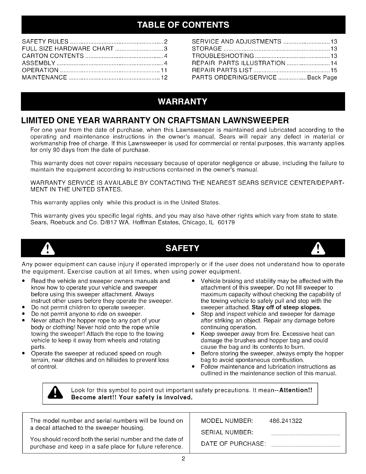 Craftsman 486241322 User Manual LAWN SWEEPER Manuals And Guides L0805387