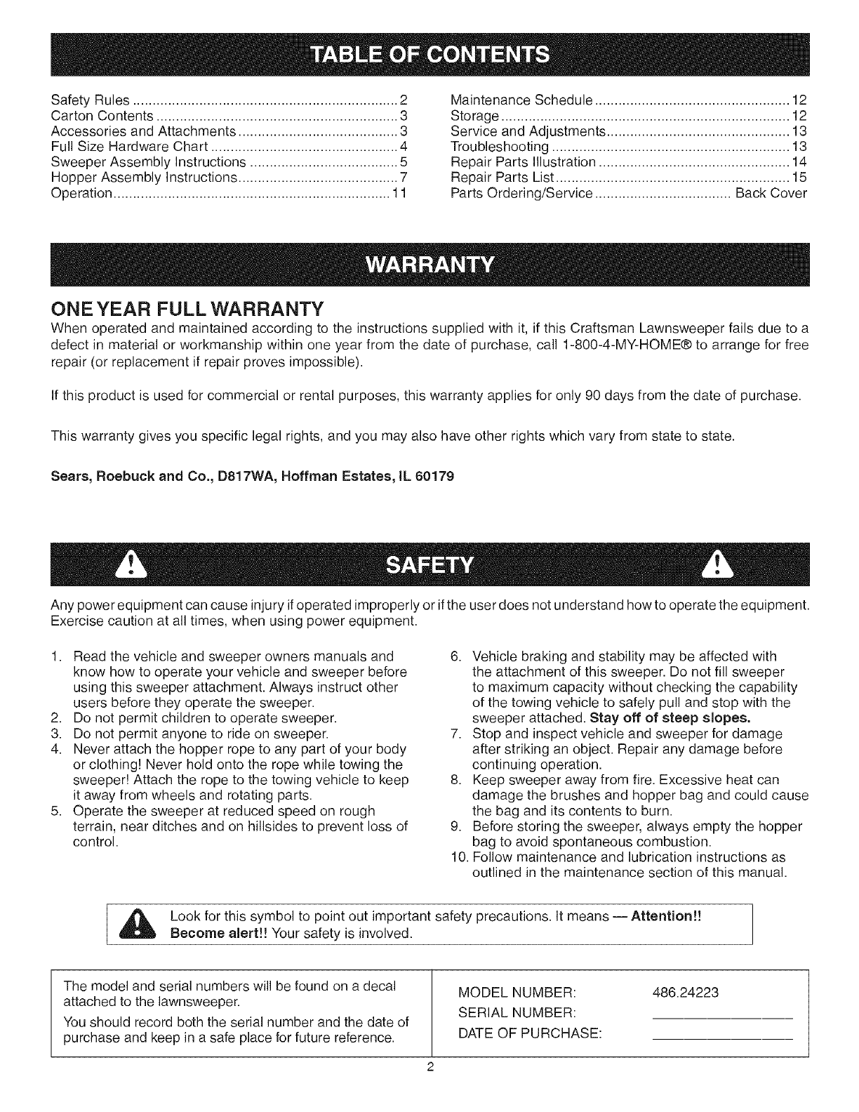 Craftsman 48624223 User Manual LAWN SWEEPER Manuals And Guides L0603464