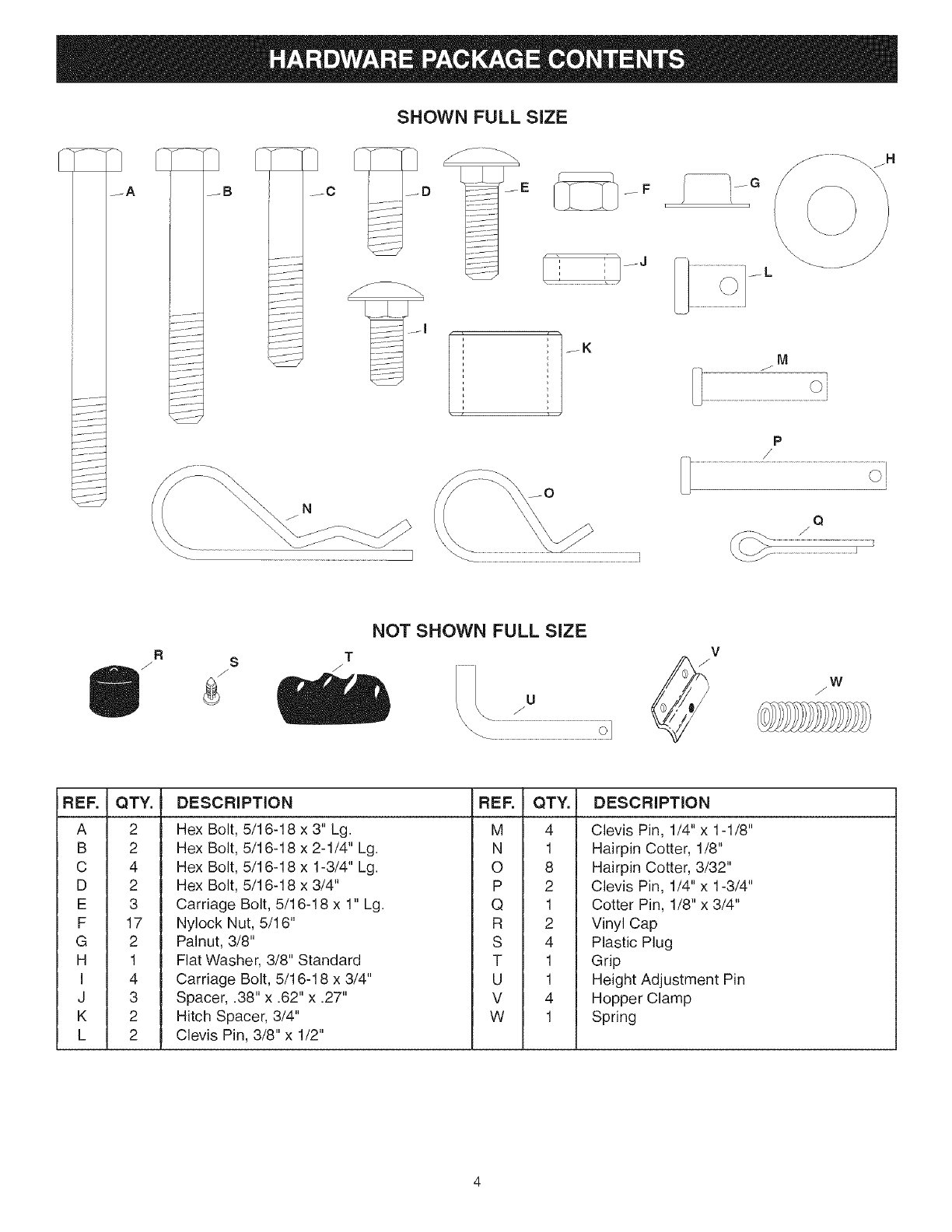 Full Size Hardware Chart ................................................ 4