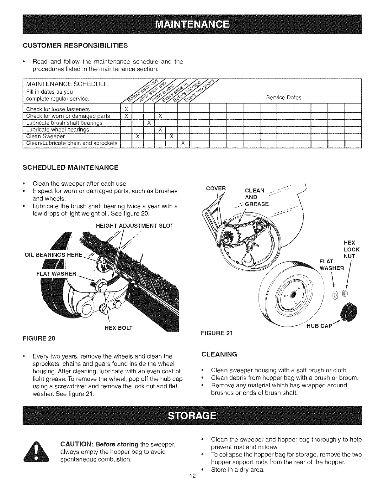 9. Before storing the sweeper, always empty the hopper