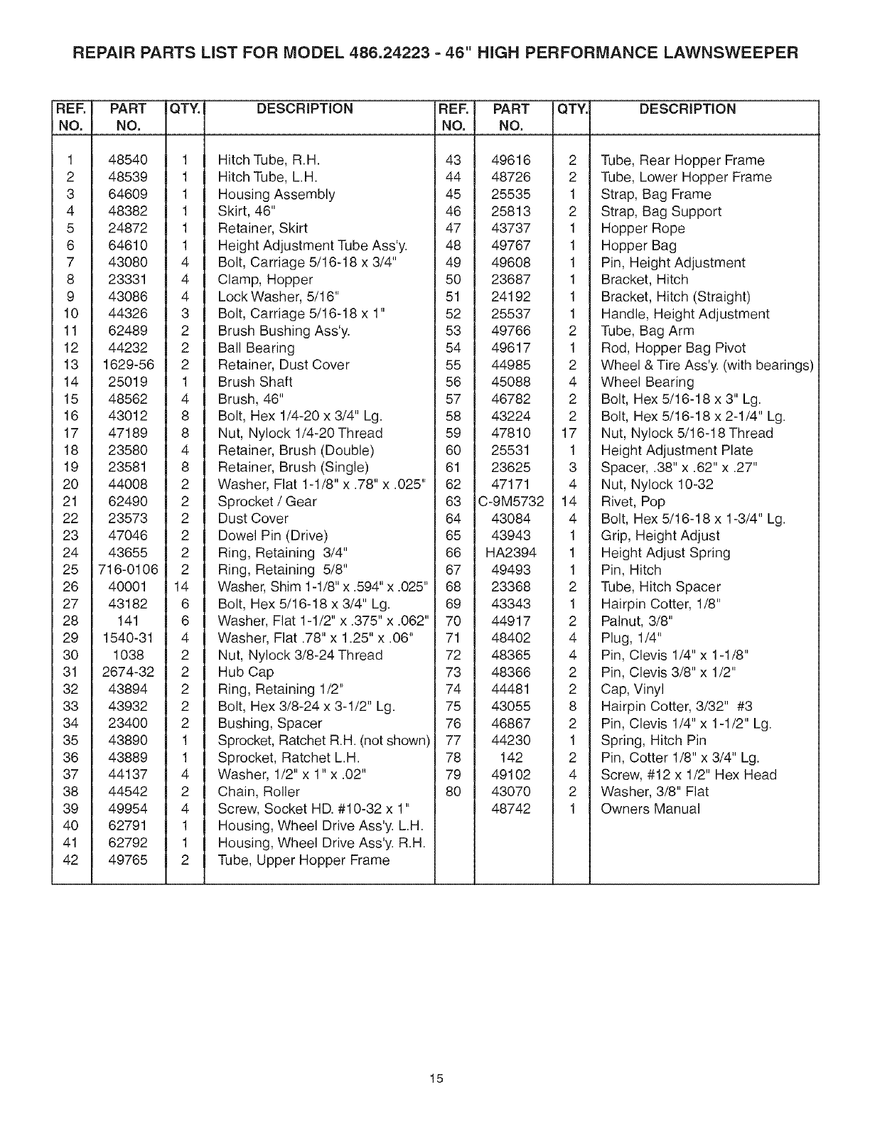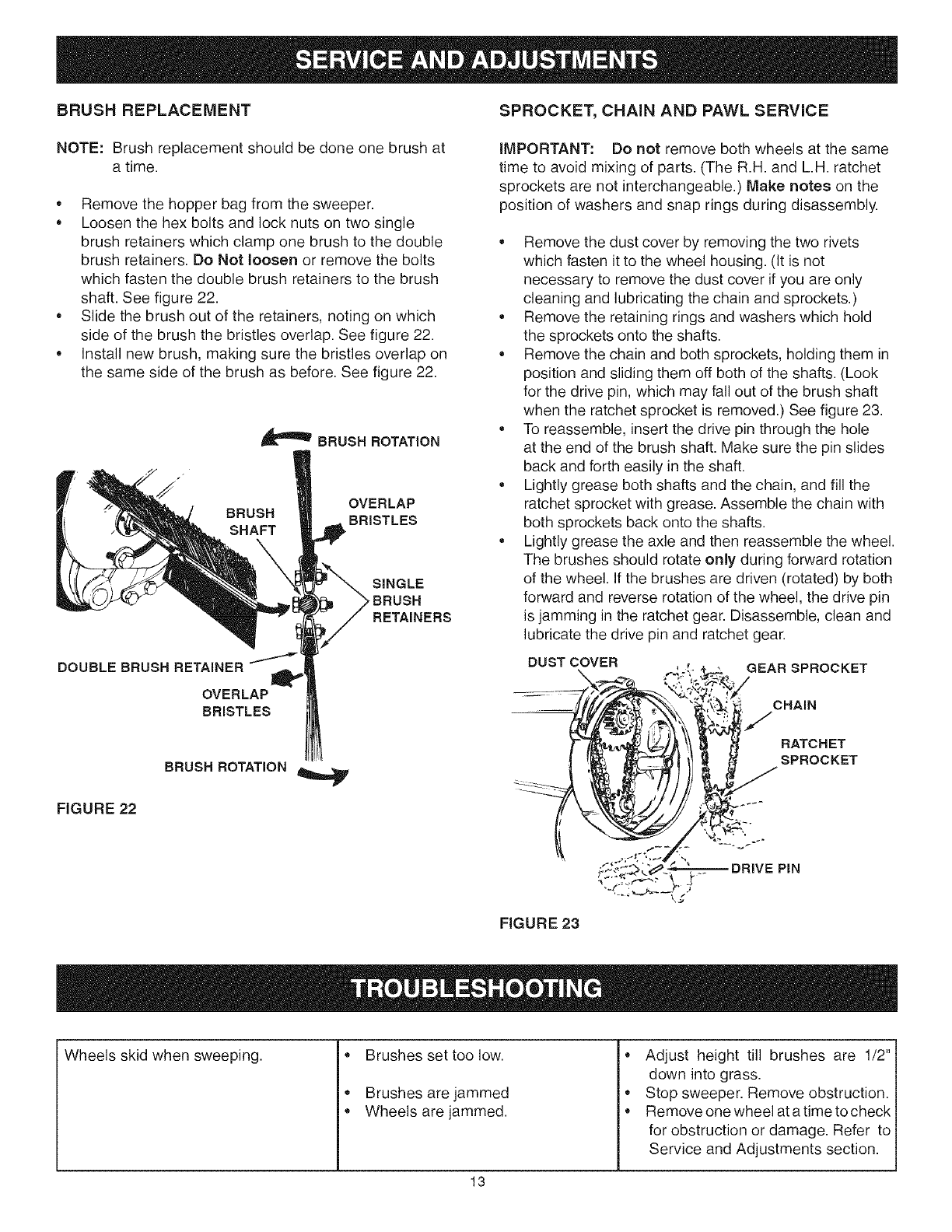 User Manual: Craftsman 48624223 48624223 CRAFTSMAN LAWN SWEEPER - Manuals and Guides View the owners manual for your CRAFTSMAN LAWN SWEEPER #48624223. Home:Lawn & Garden Parts:Craftsman Parts:Craftsman LAWN SWEEPER Manual