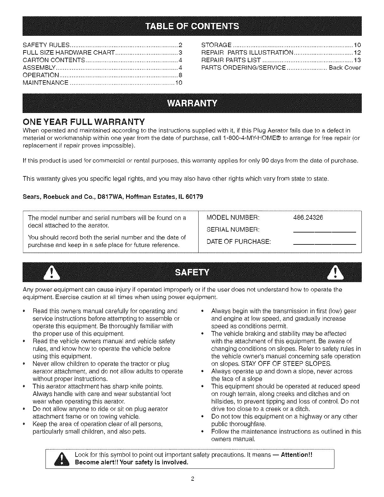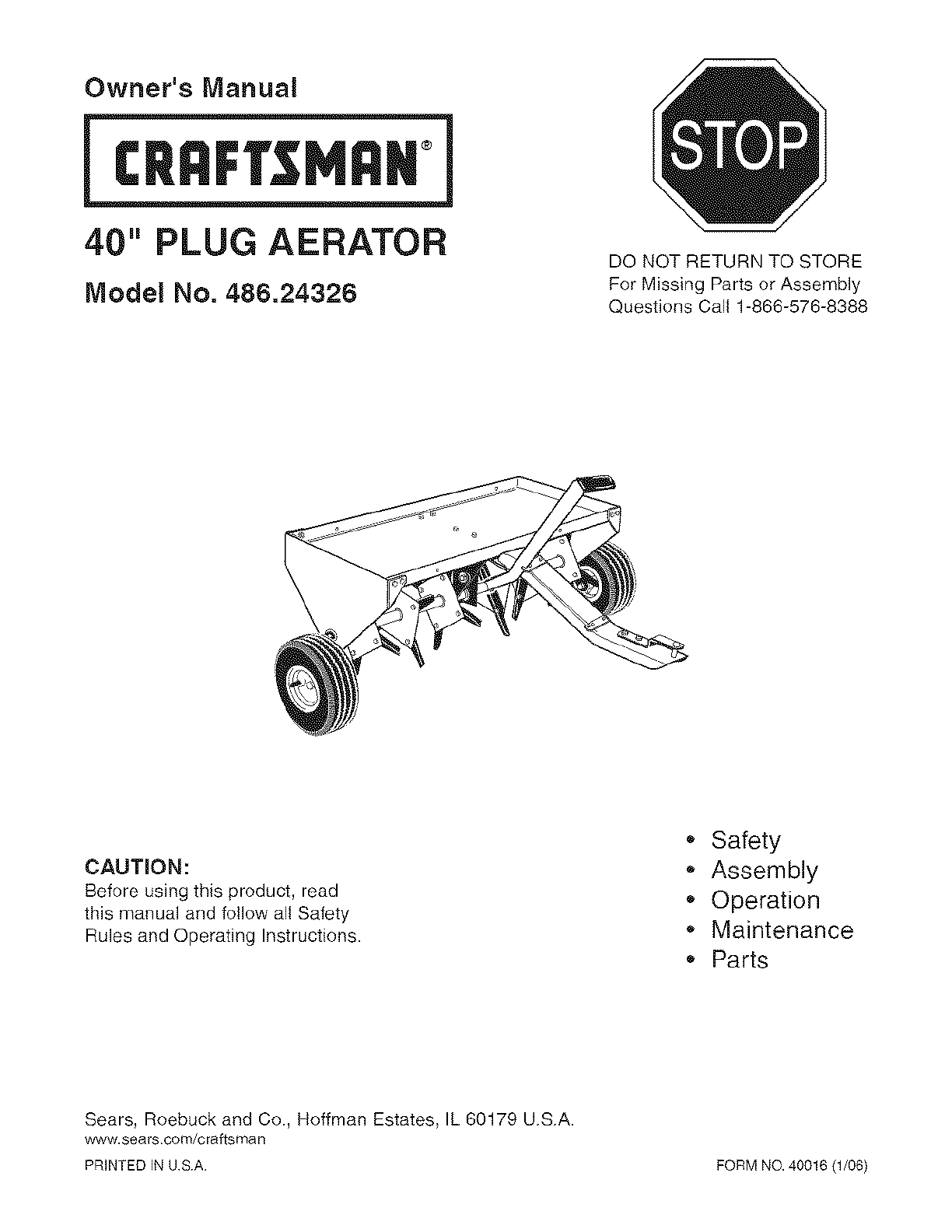 Craftsman 48624326 User Manual AERATOR Manuals And Guides L0603013