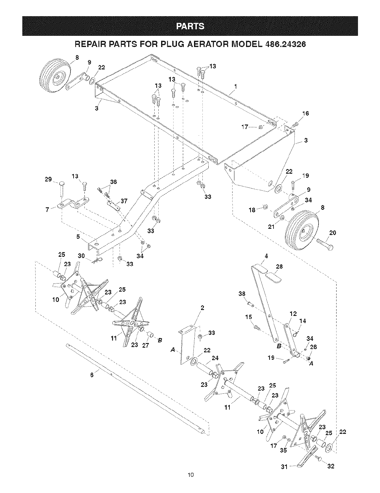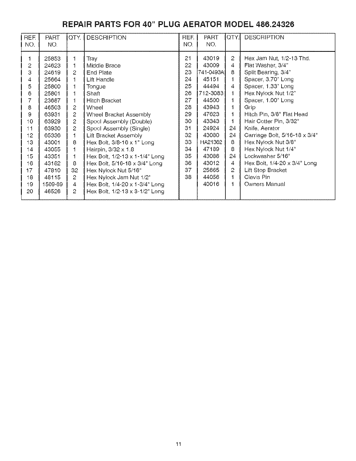 REPAIR PARTS FOR 40" PLUG AERATOR MODEL 486.24326