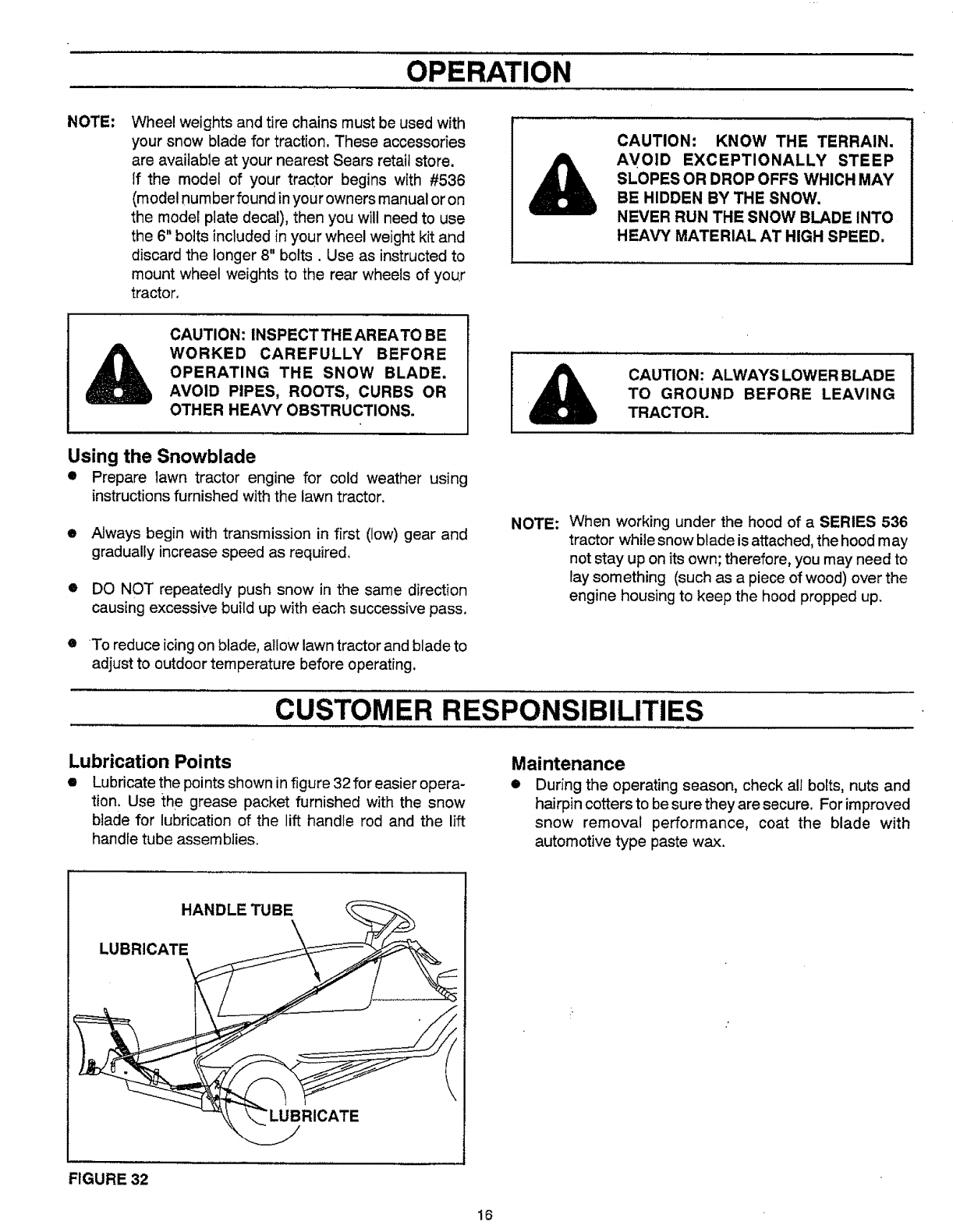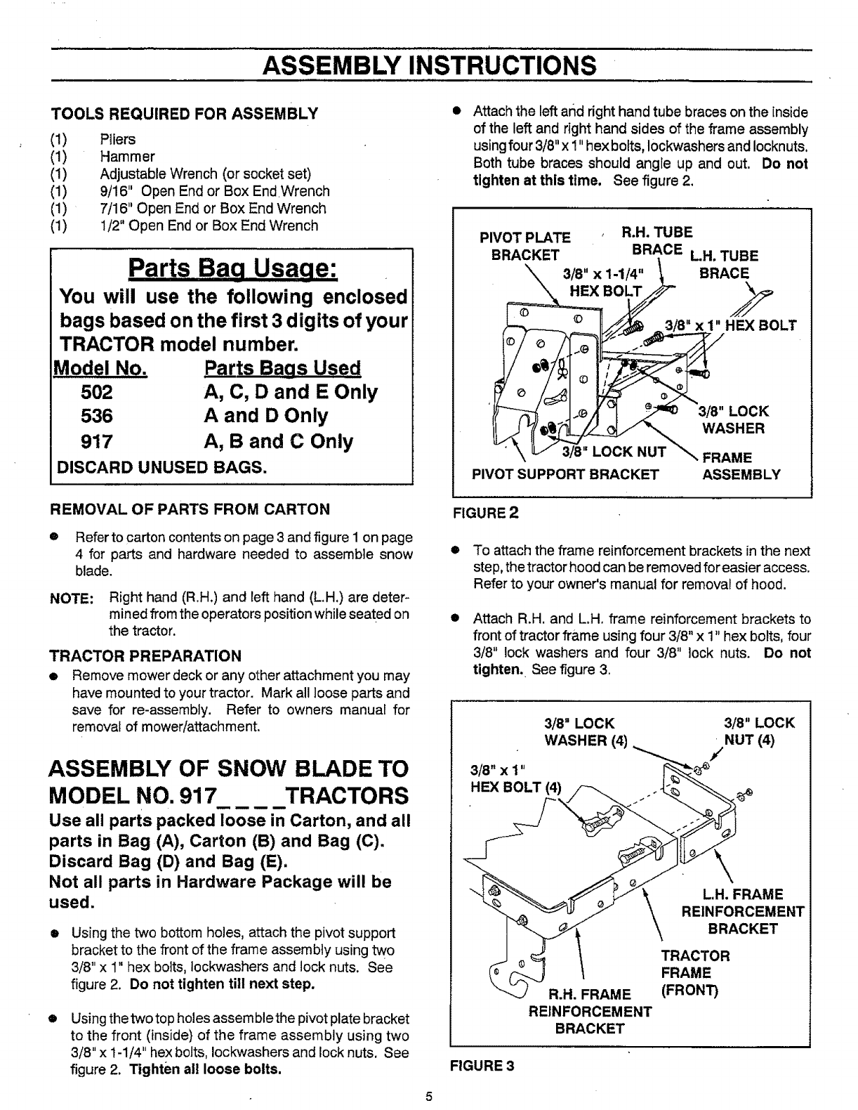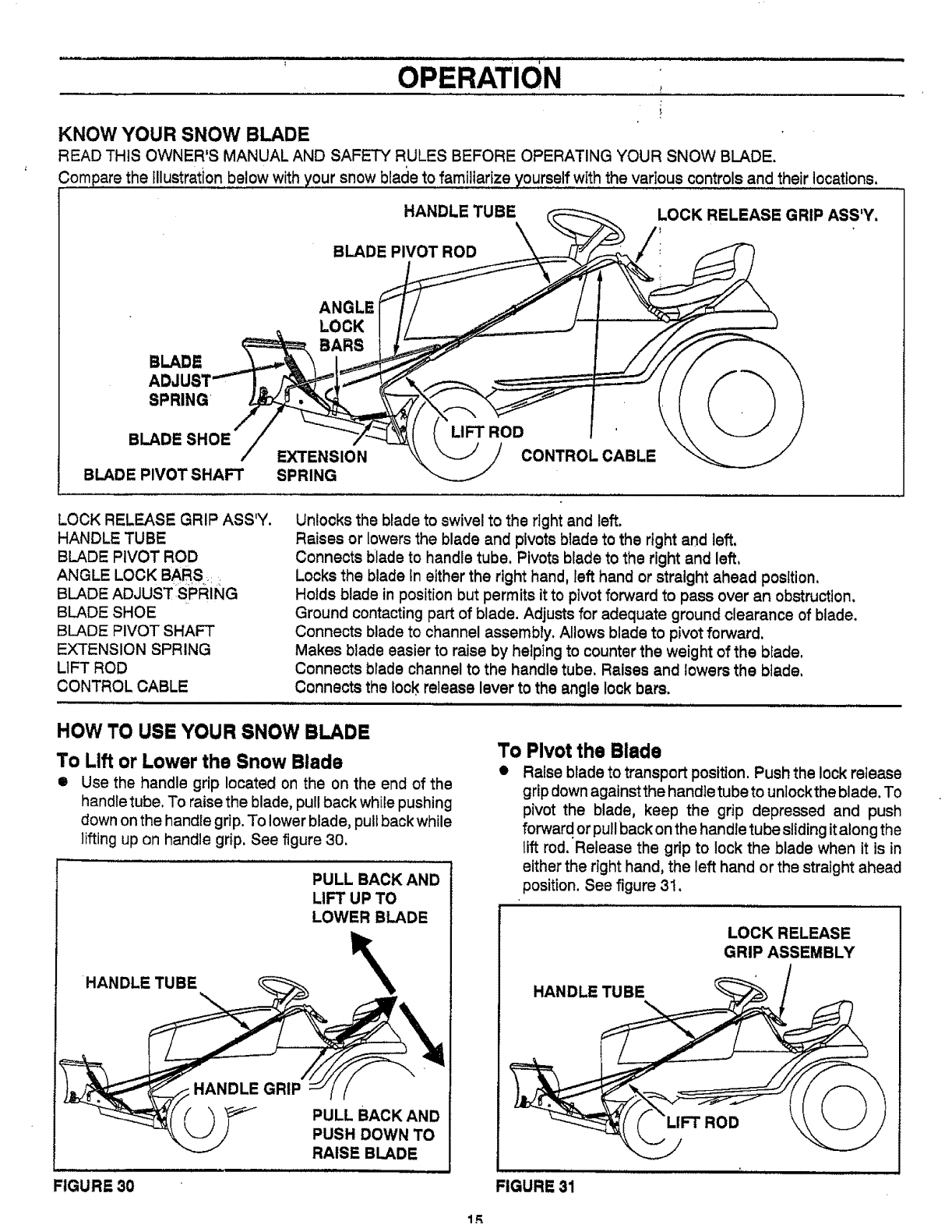1. Read the tractor and snow blade owners manuals and know howto operate yourtractor before using tractorwlth snow blade