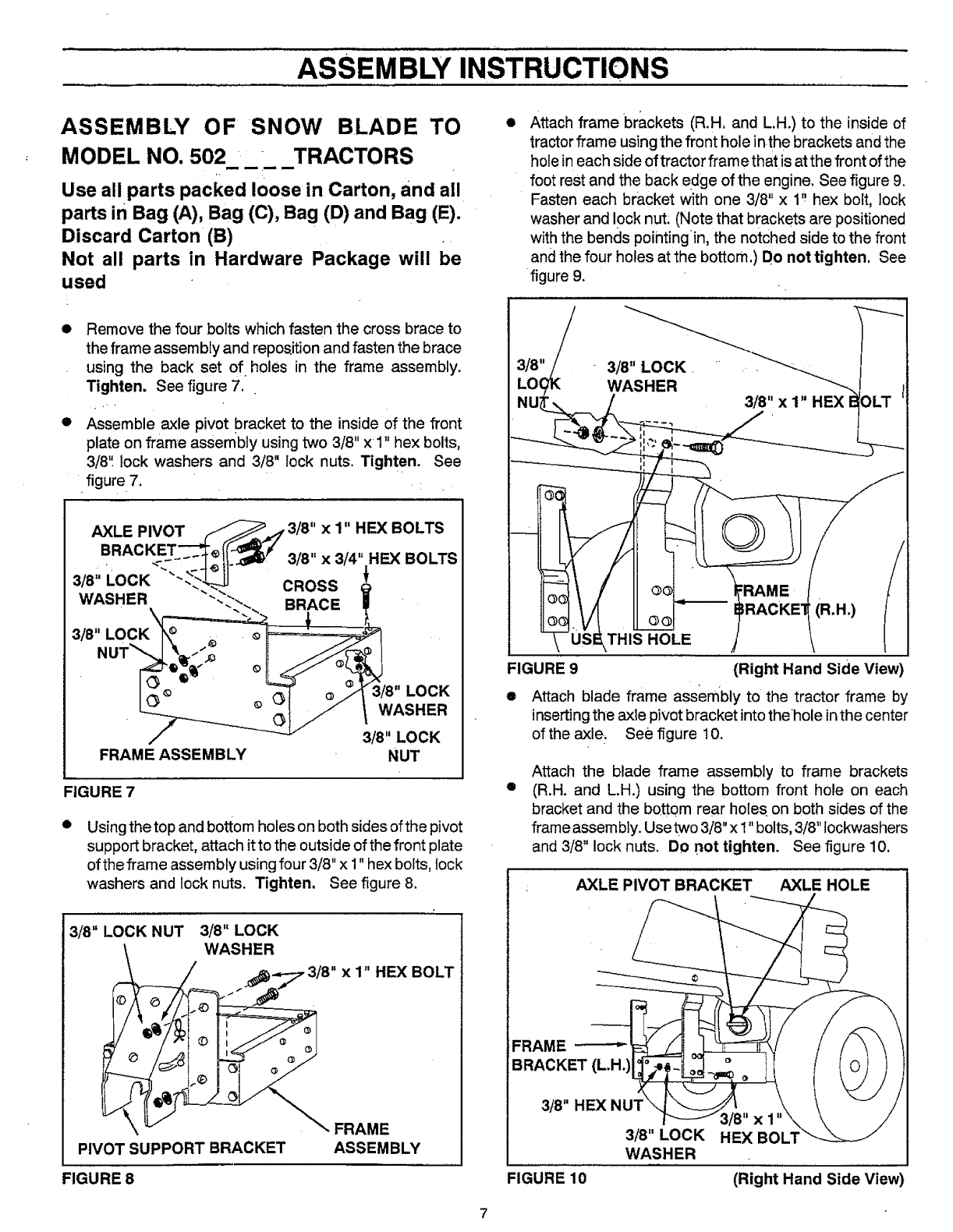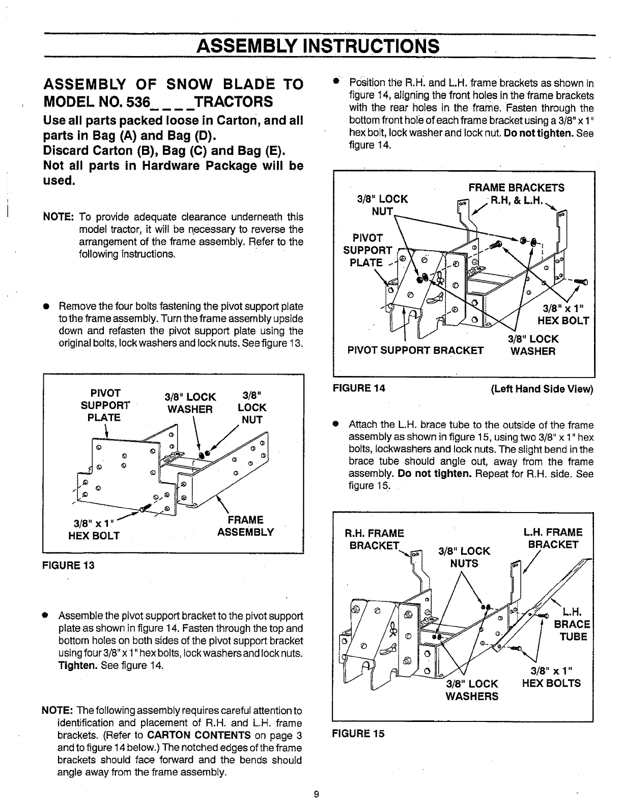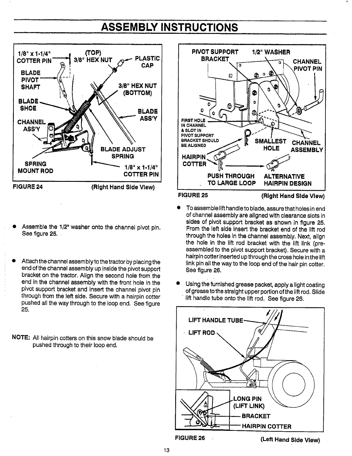 1. Read the tractor and snow blade owners manuals and know howto operate yourtractor before using tractorwlth snow blade