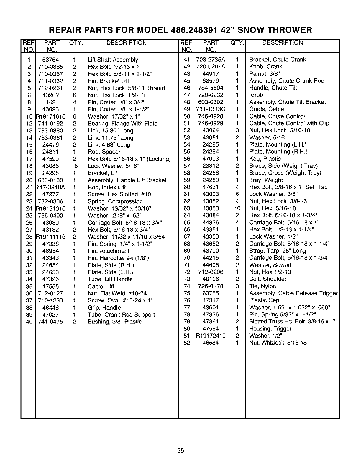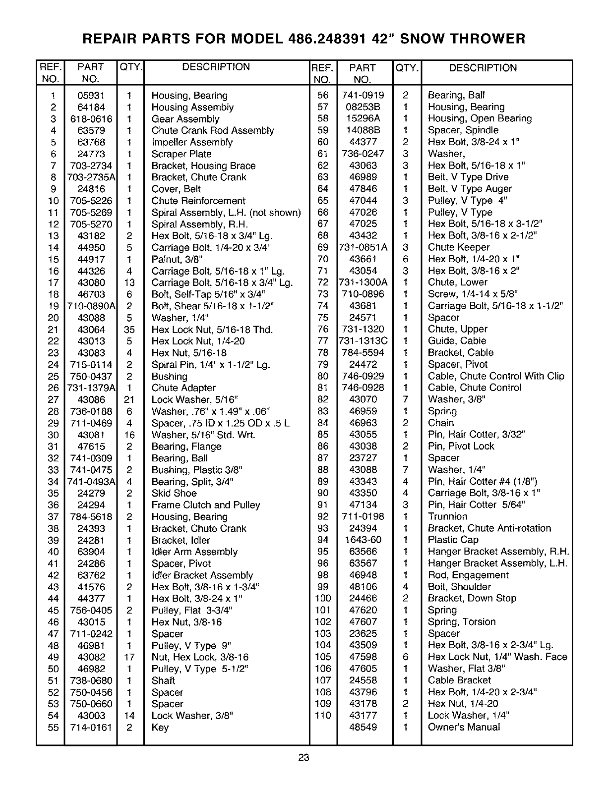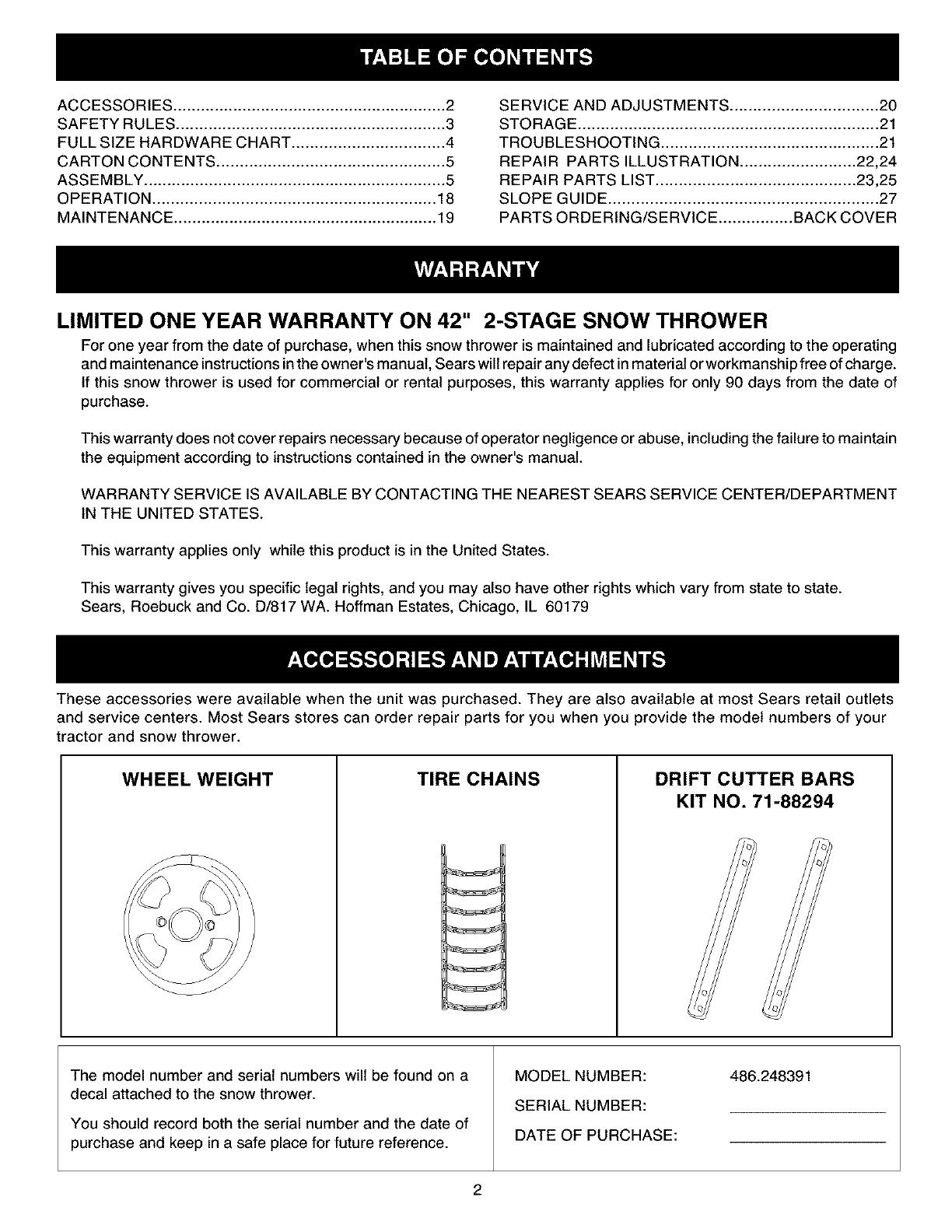 User Manual: Craftsman 486248391 486248391 CRAFTSMAN SNOW THROWER ATTACHMENT - Manuals and Guides View the owners manual for your CRAFTSMAN SNOW THROWER ATTACHMENT #486248391. Home:Lawn & Garden Parts:Craftsman Parts:Craftsman SNOW THROWER ATTACHMENT Manual