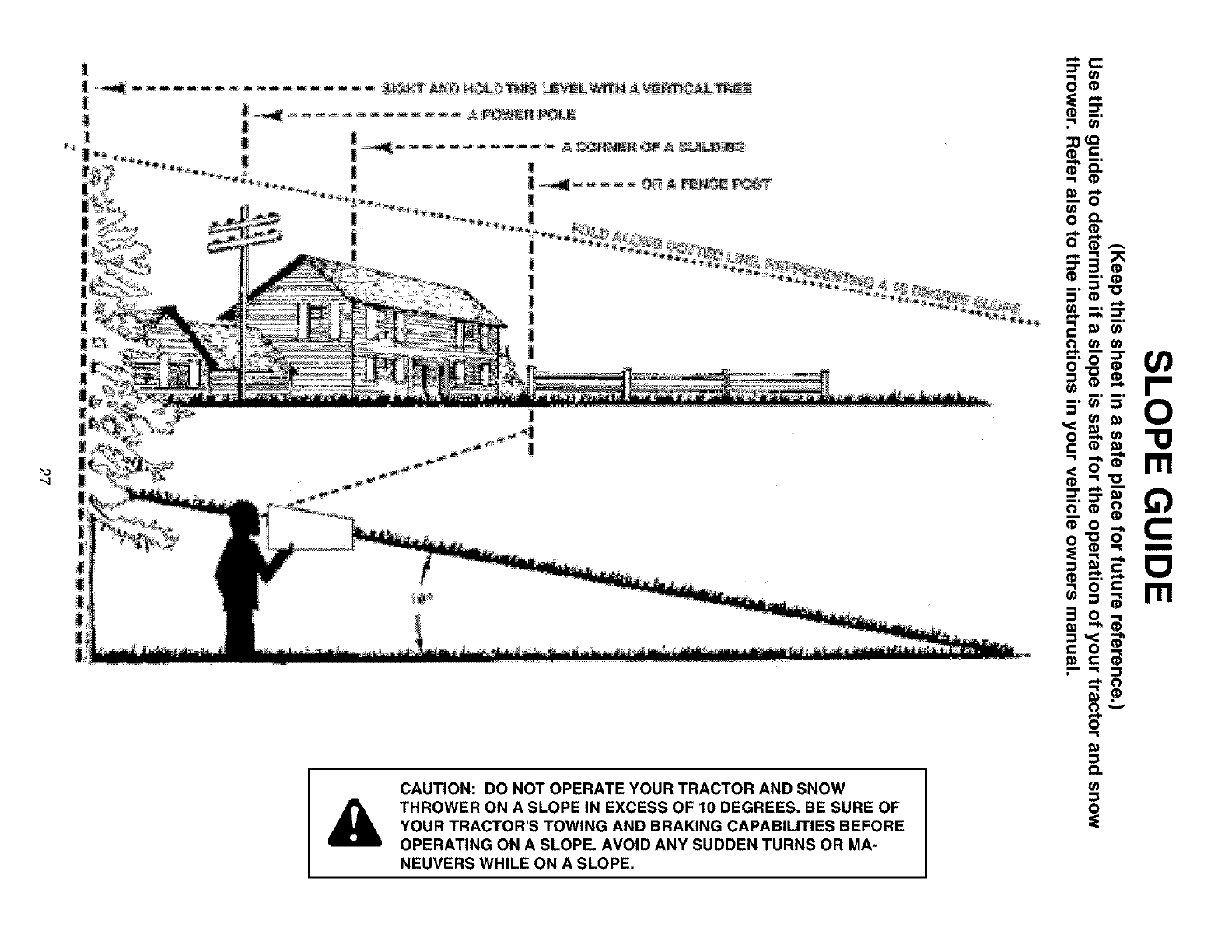 THROWER ON A SLOPE IN EXCESS OF 10 DEGREES. BE SURE OF