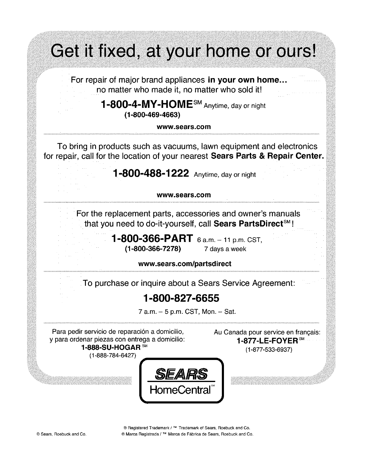 @ Sears, Roebuck and Co. ® Marca Registrada /TM Marca de F&brica de Sears, Roebuck and Co.