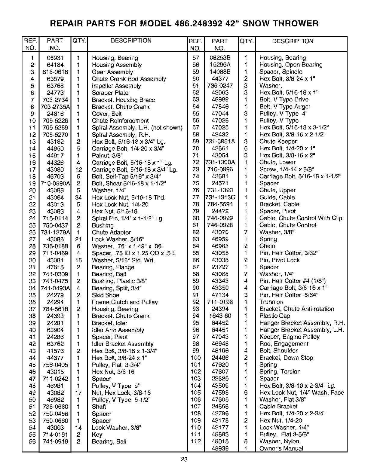 User Manual: Craftsman 486248392 486248392 CRAFTSMAN SNOW THROWER ATTACHMENT - Manuals and Guides View the owners manual for your CRAFTSMAN SNOW THROWER ATTACHMENT #486248392. Home:Lawn & Garden Parts:Craftsman Parts:Craftsman SNOW THROWER ATTACHMENT Manual