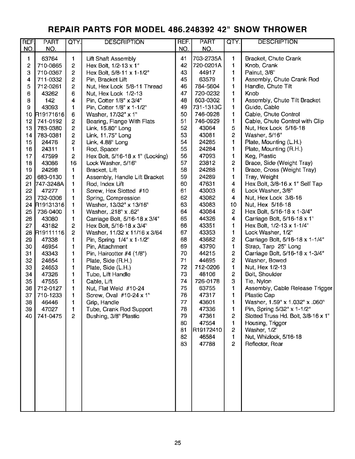 710-0865 2 Hex Bolt, 1/2-13 x 1" 42 720-0201A 1 Knob, Crank