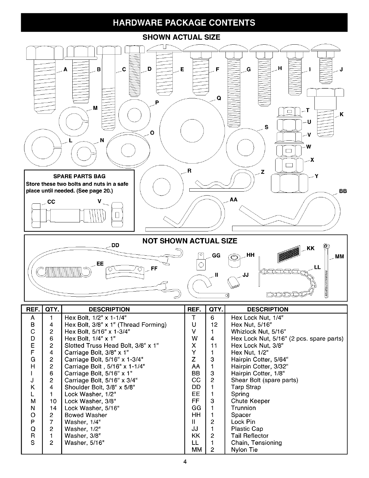 FULL SIZE HARDWARE CHART ................................. 4
