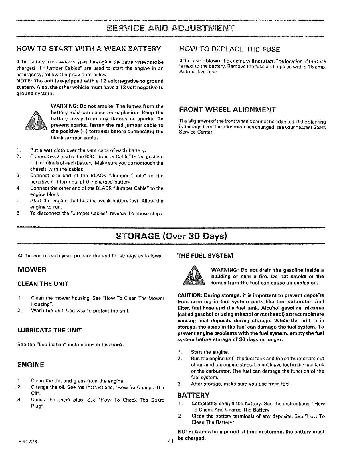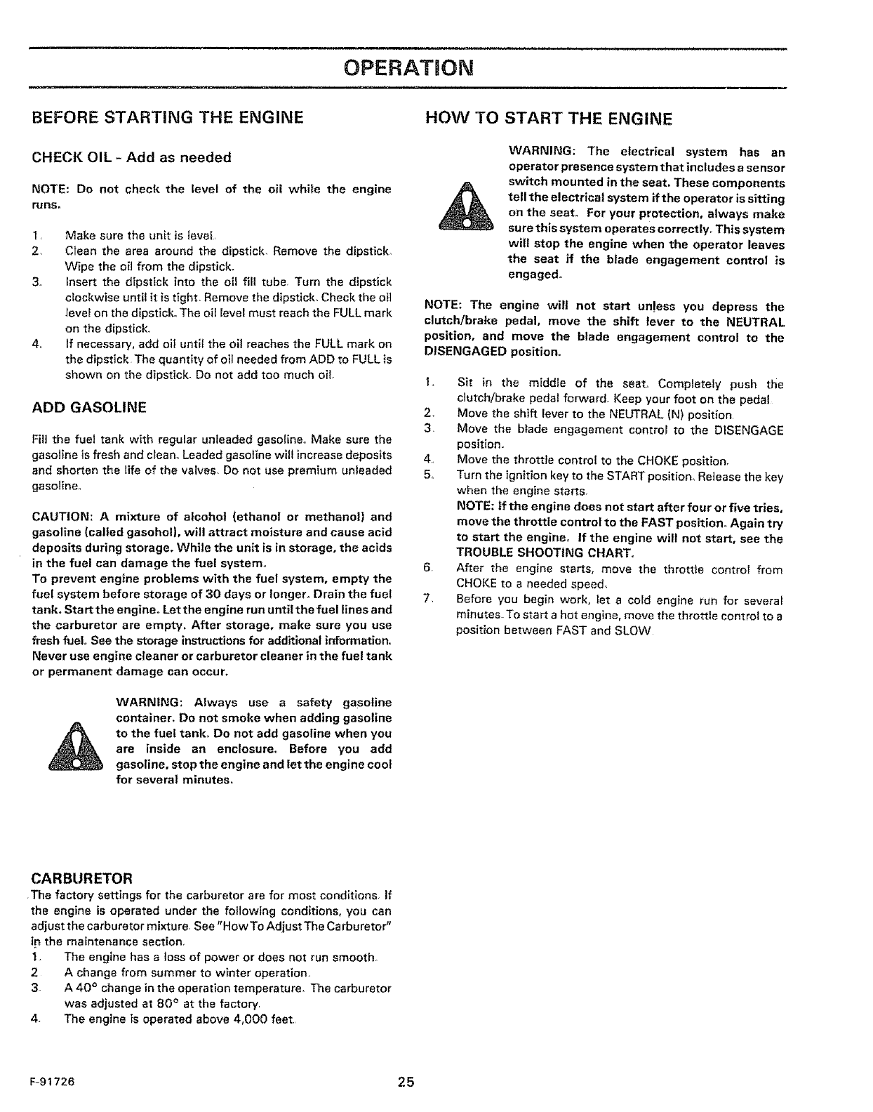 1, Use extra care when handling gasoline and other fuels, Fuels are flammable and the vapors are explosive,