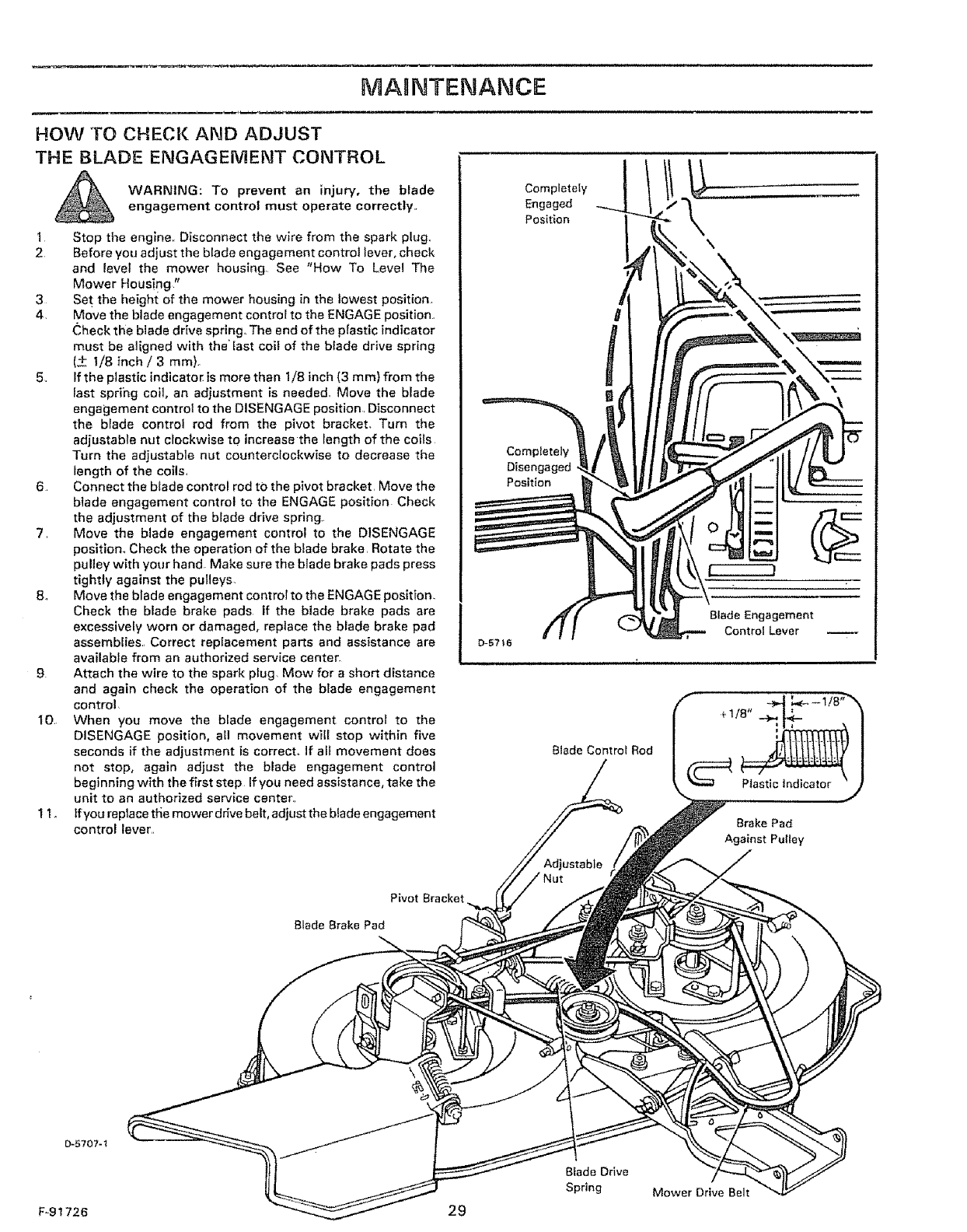 1 1, Disengage power to attachment(s) when transporting or not {n use,, Disengage the blade(s) when not mowing°