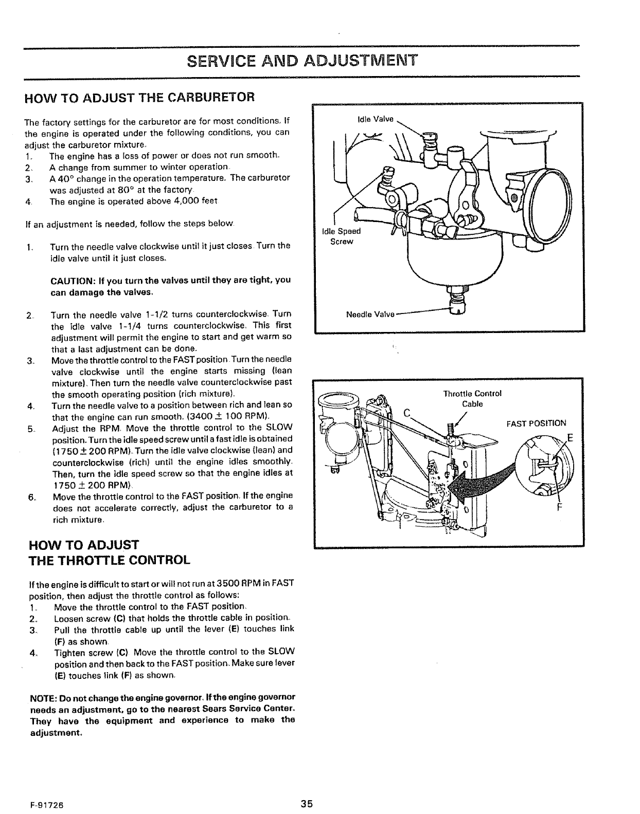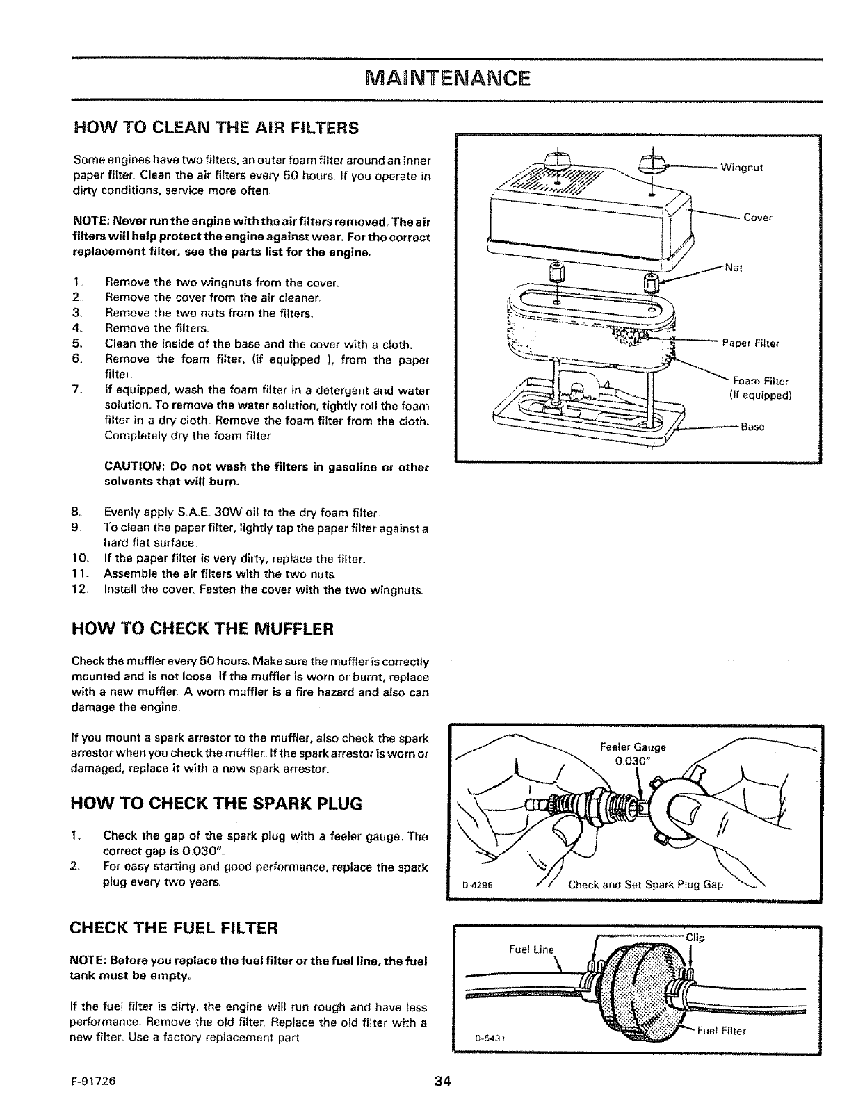 spark plug. Always give the Model Number when you call for service or' order repair