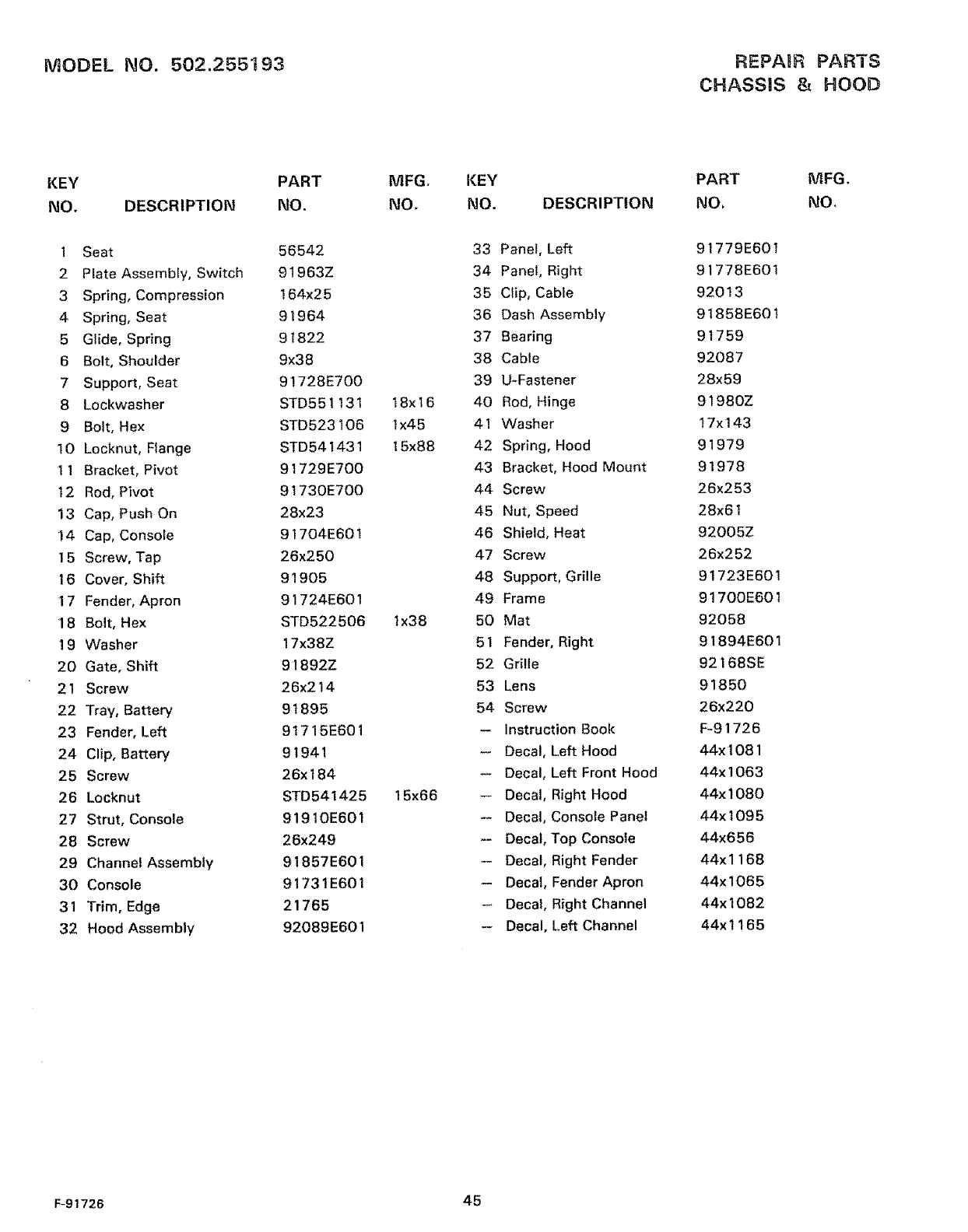 o MODEL NUMBER - 502.255193