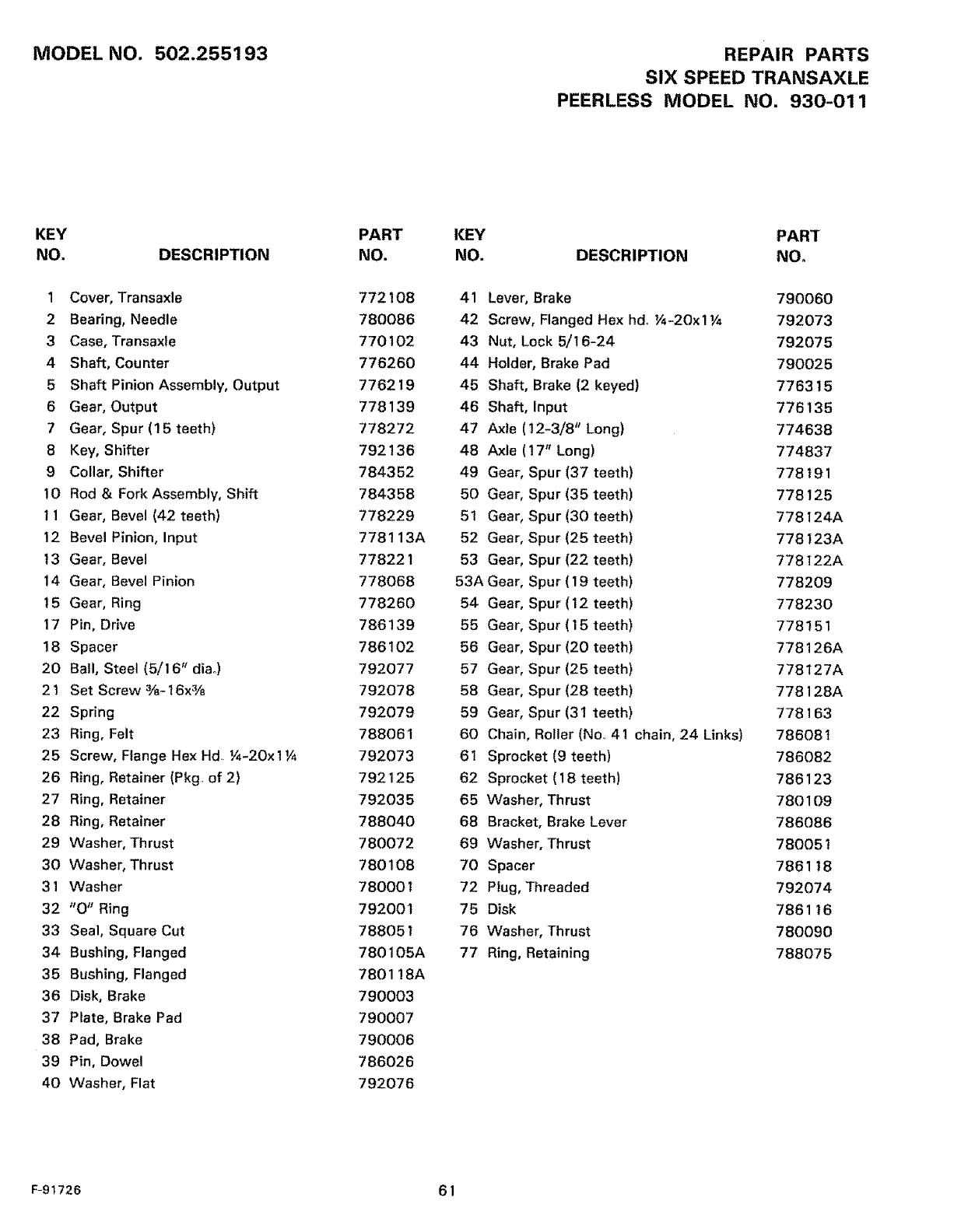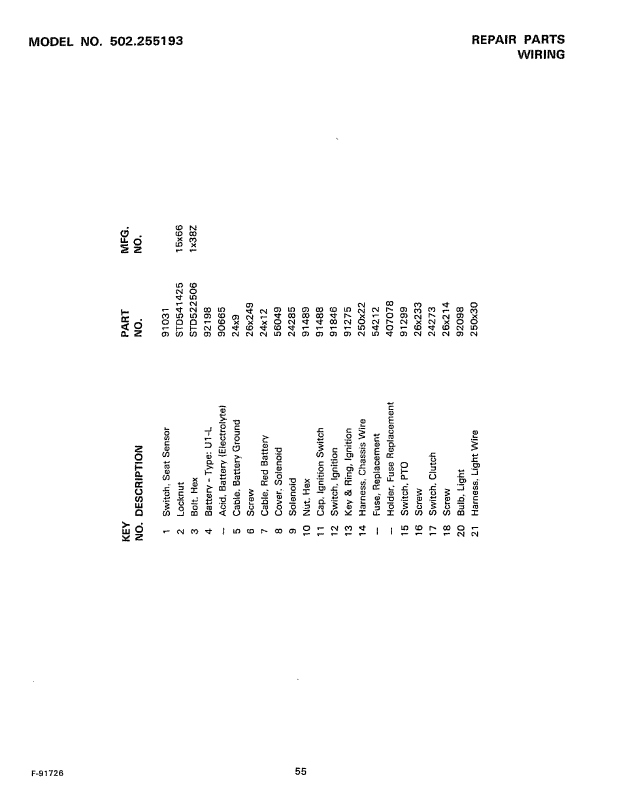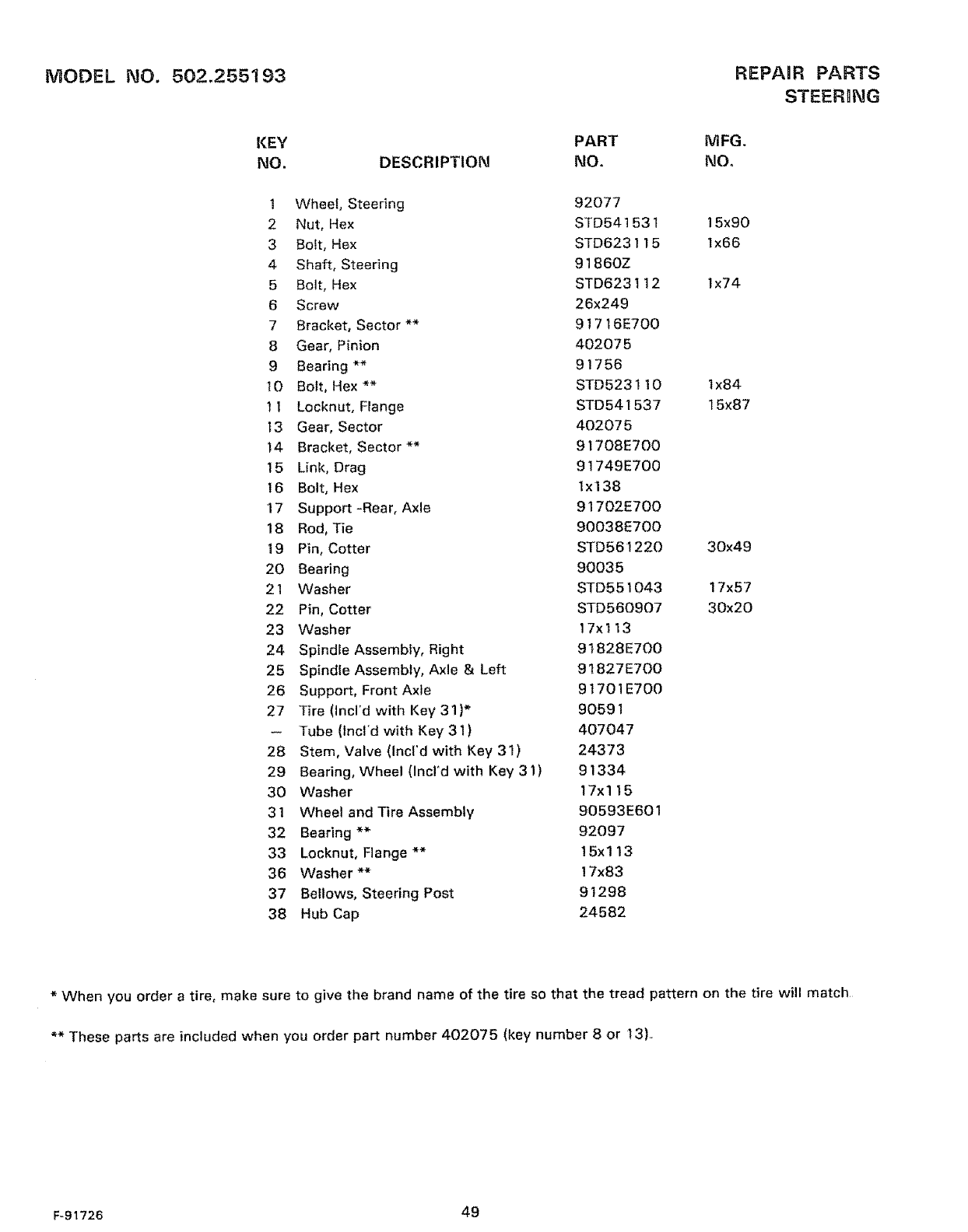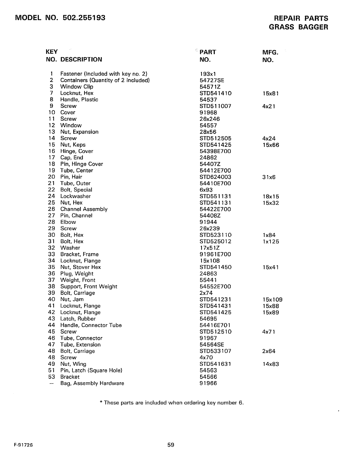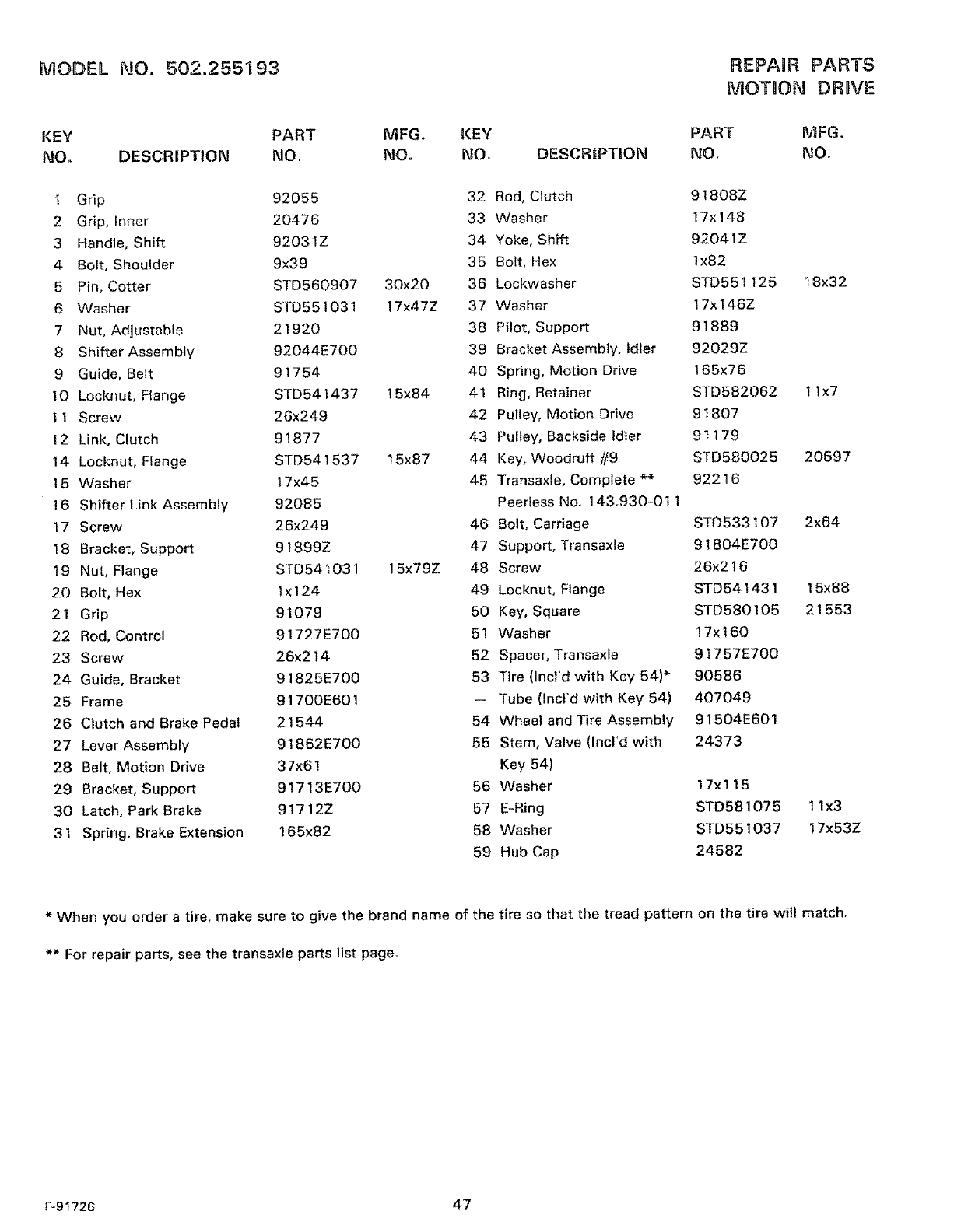 WHEN ORDERING REPAIR PARTS, ALWAYS HAVETHE FOLLOWING INFORMATION