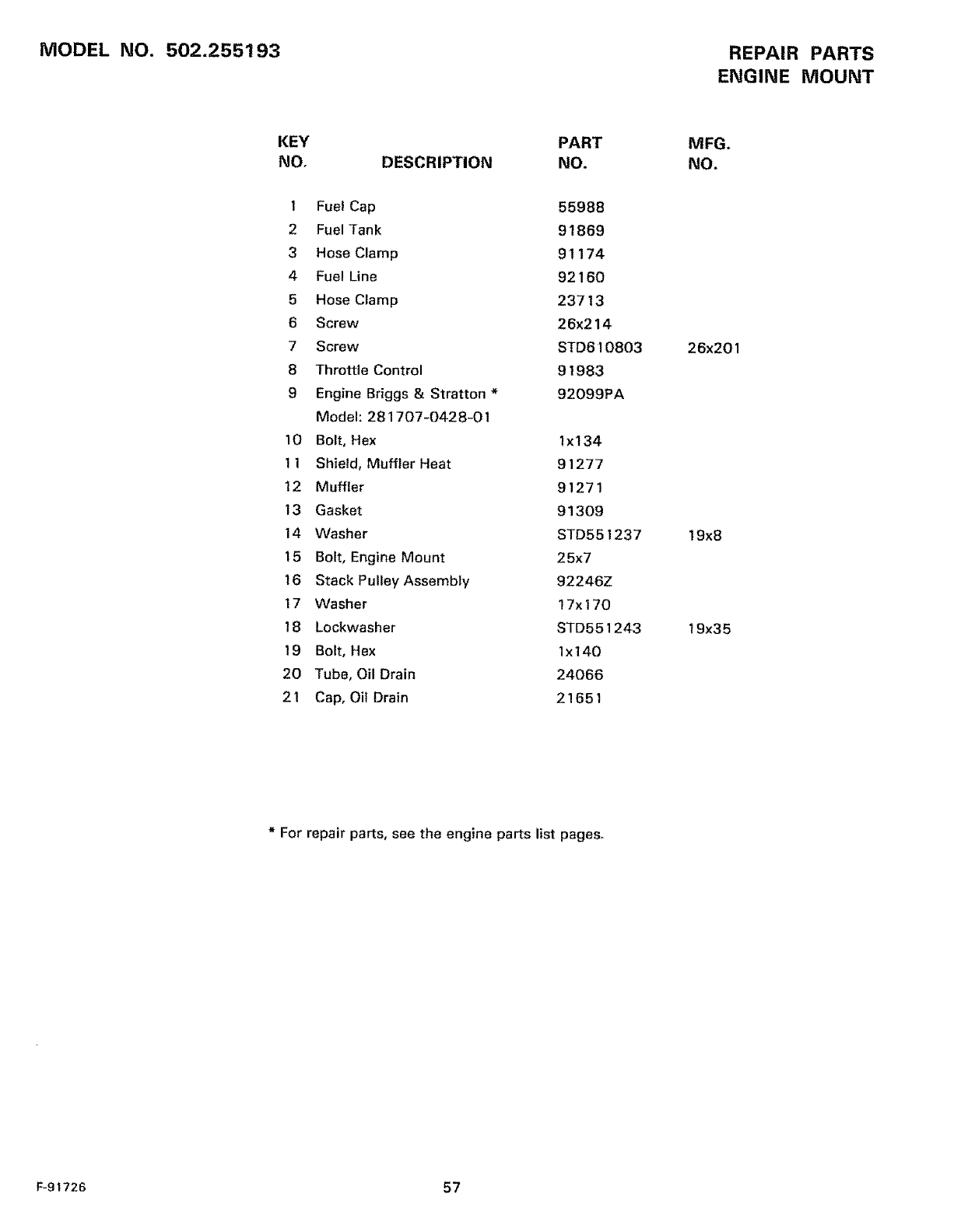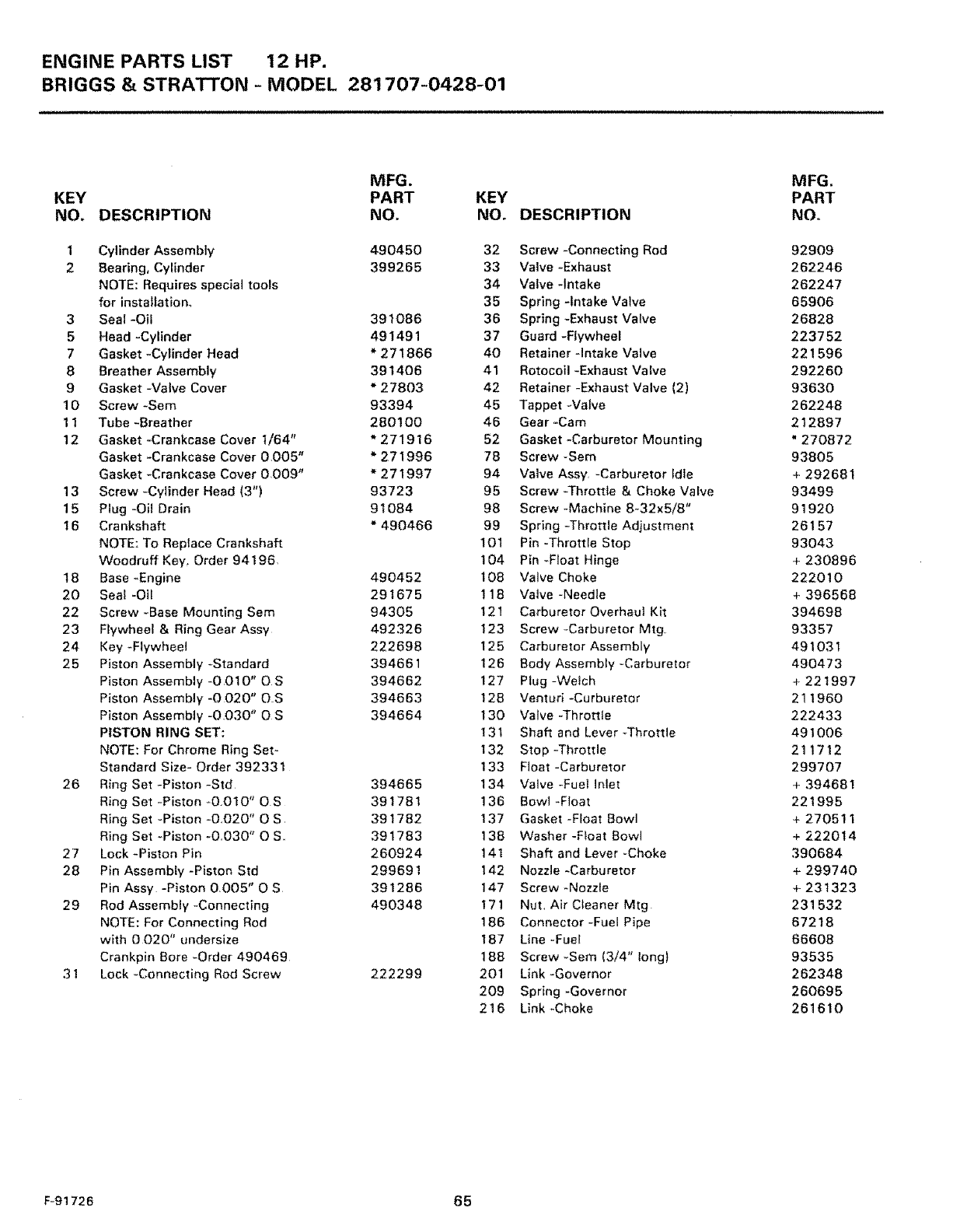 6 ENGINE MODEL NO.- 281707-0428-01