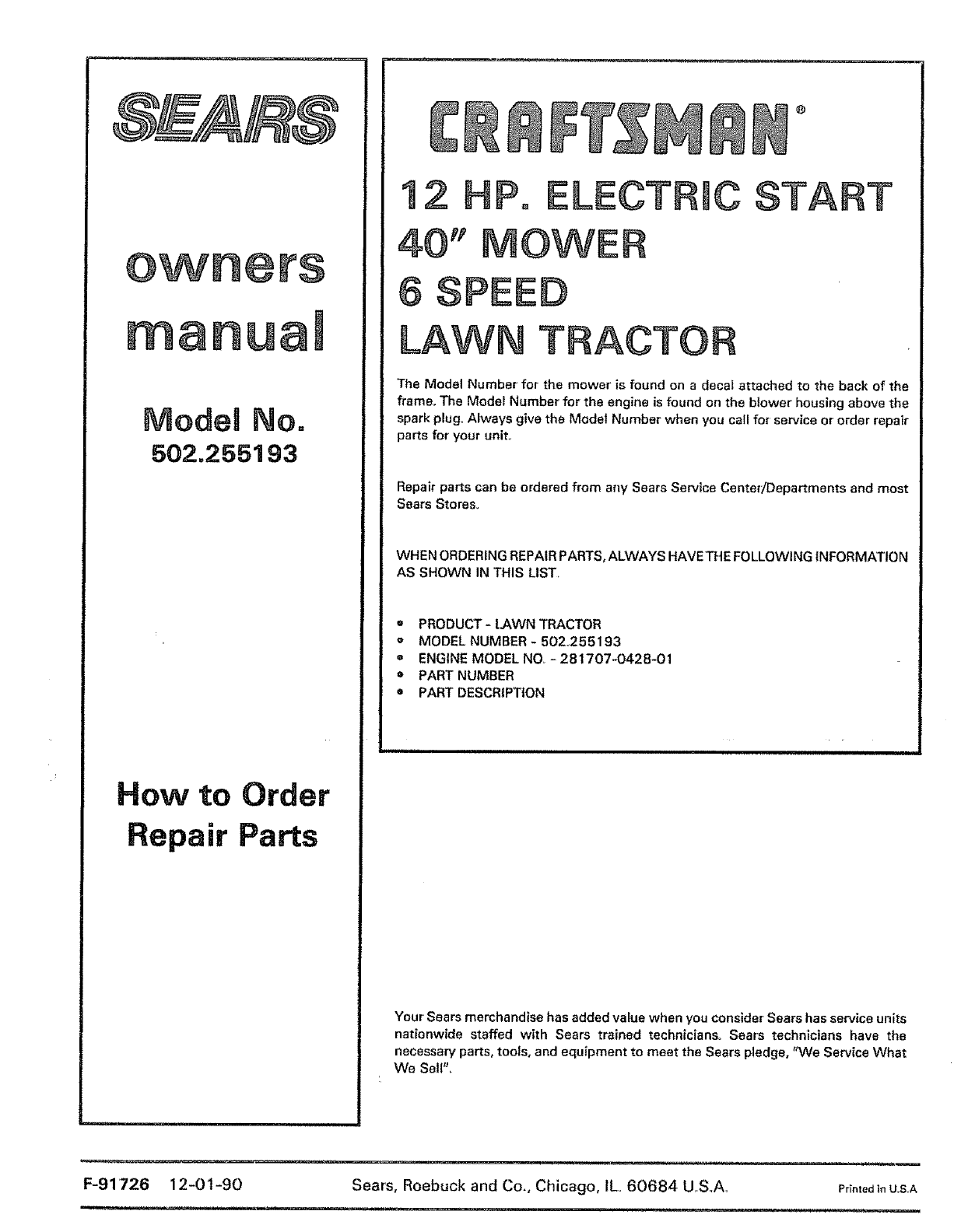 F-91726 12-01-90 Sears, Roebuck and Co, Chicago, IL 60684 UoS.A. PrintedinUSA