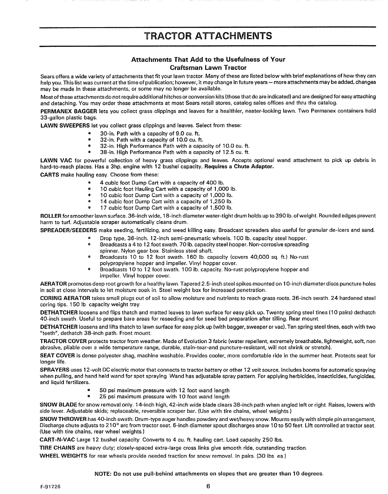 5, Do not use a grass bagger or other rear mounted accessories on steep slopes (greater than 10 °}