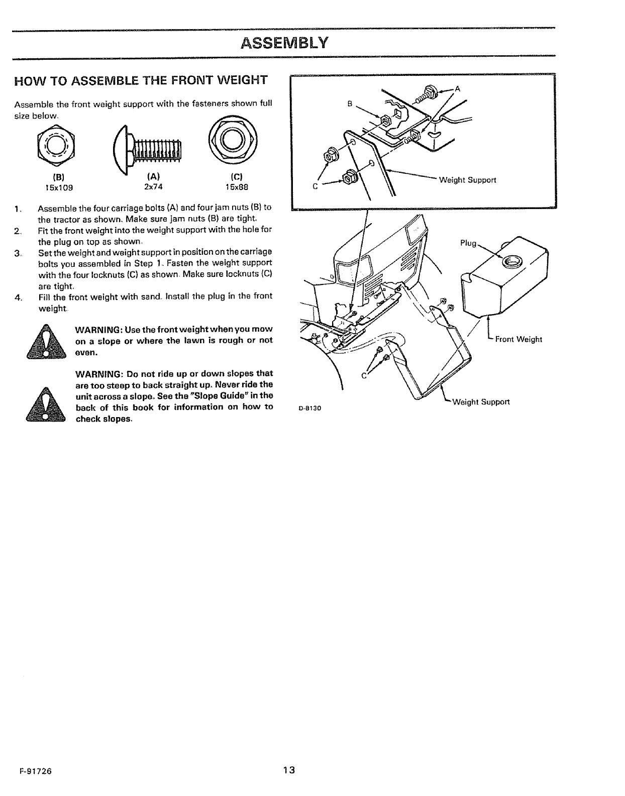 d. Use counterweights or wheel weights when suggested in the Instruction Book.