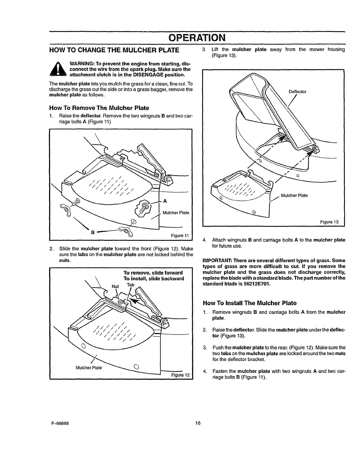 HOW TO CHANGE THE MULCHER PLATE .........................