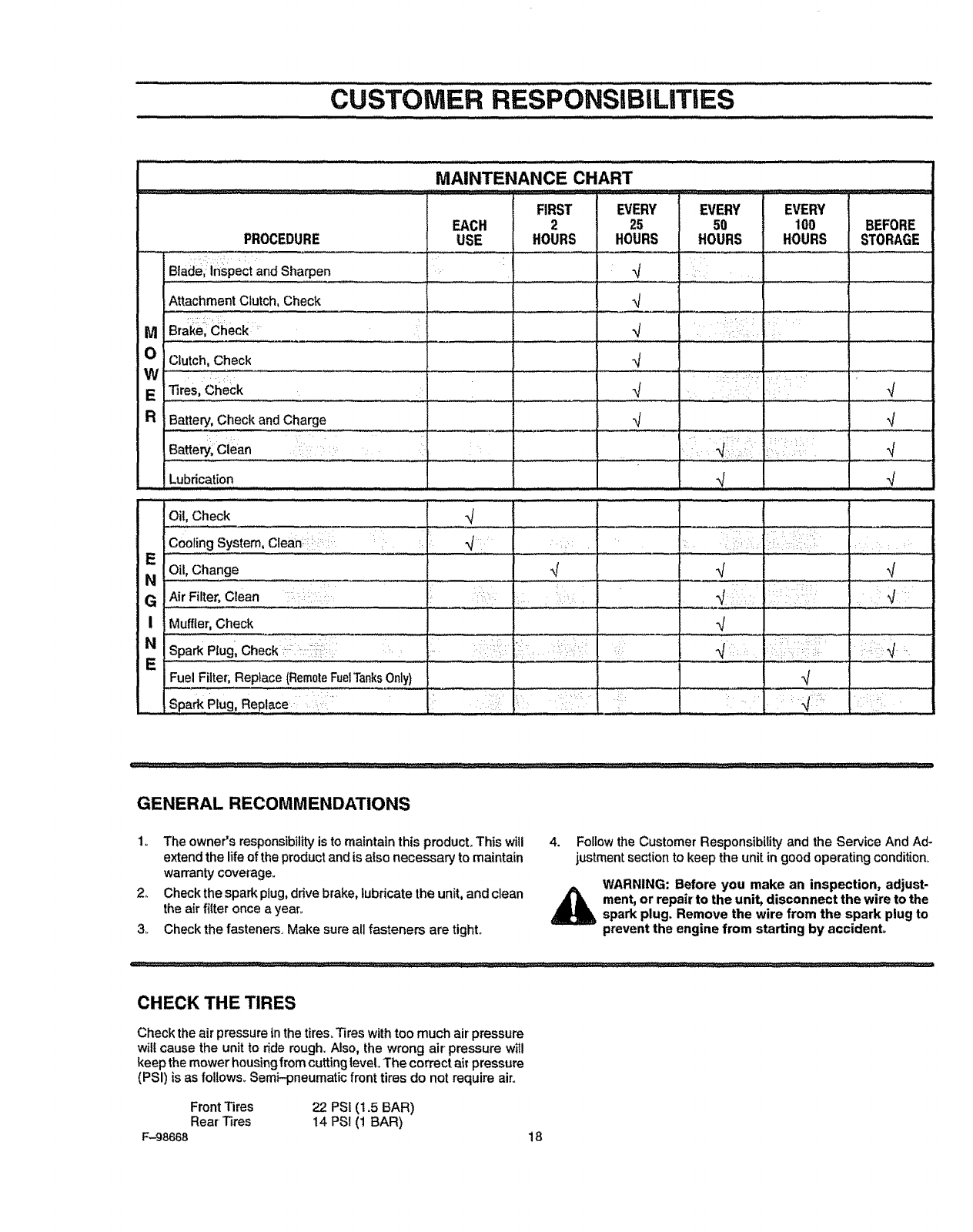Tire Pressure, 9, 18, 28