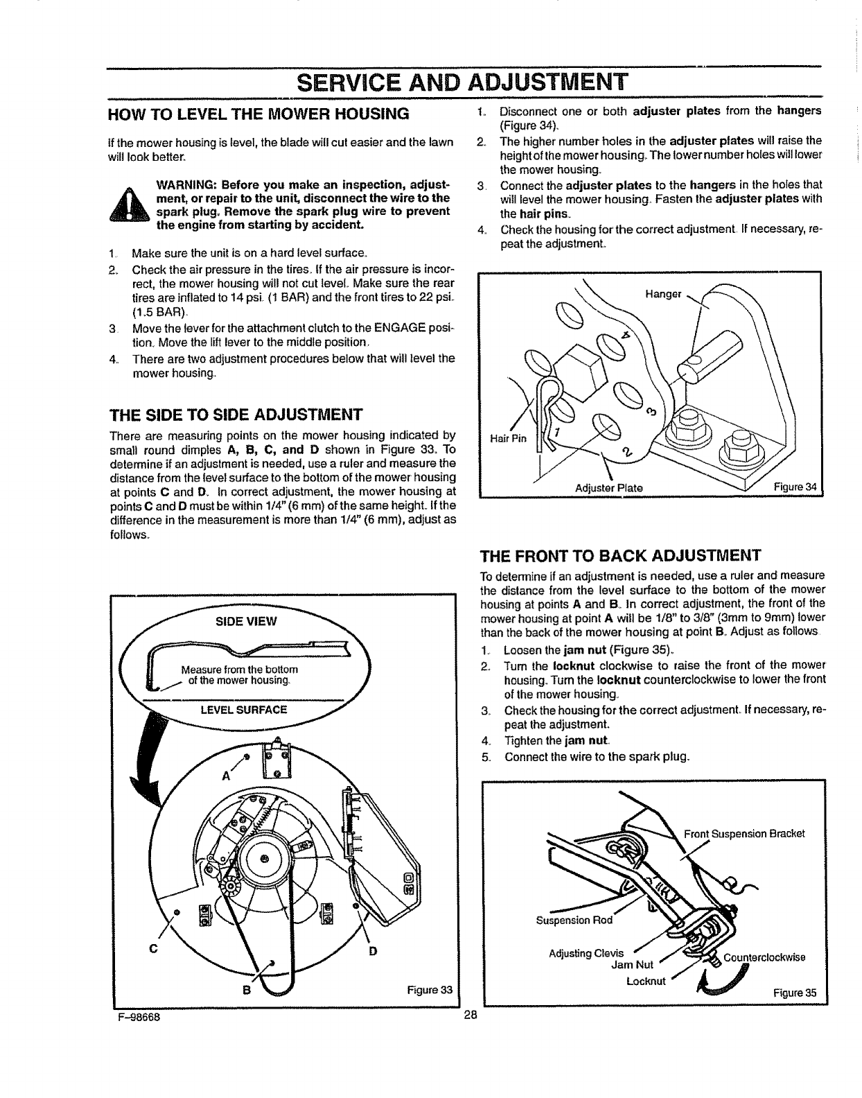 13 HOW TO LEVEL THE MOWER HOUSING ......................... 28