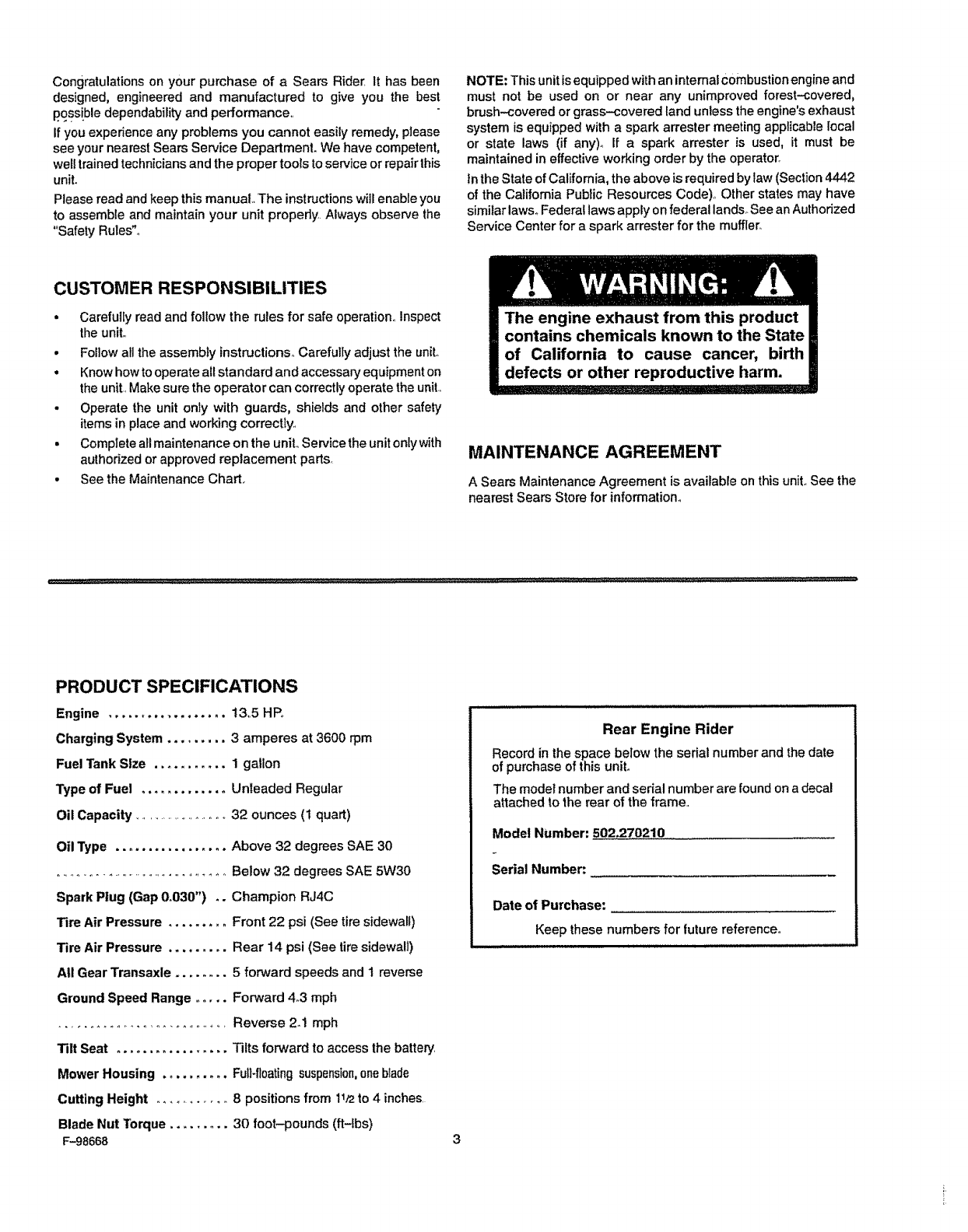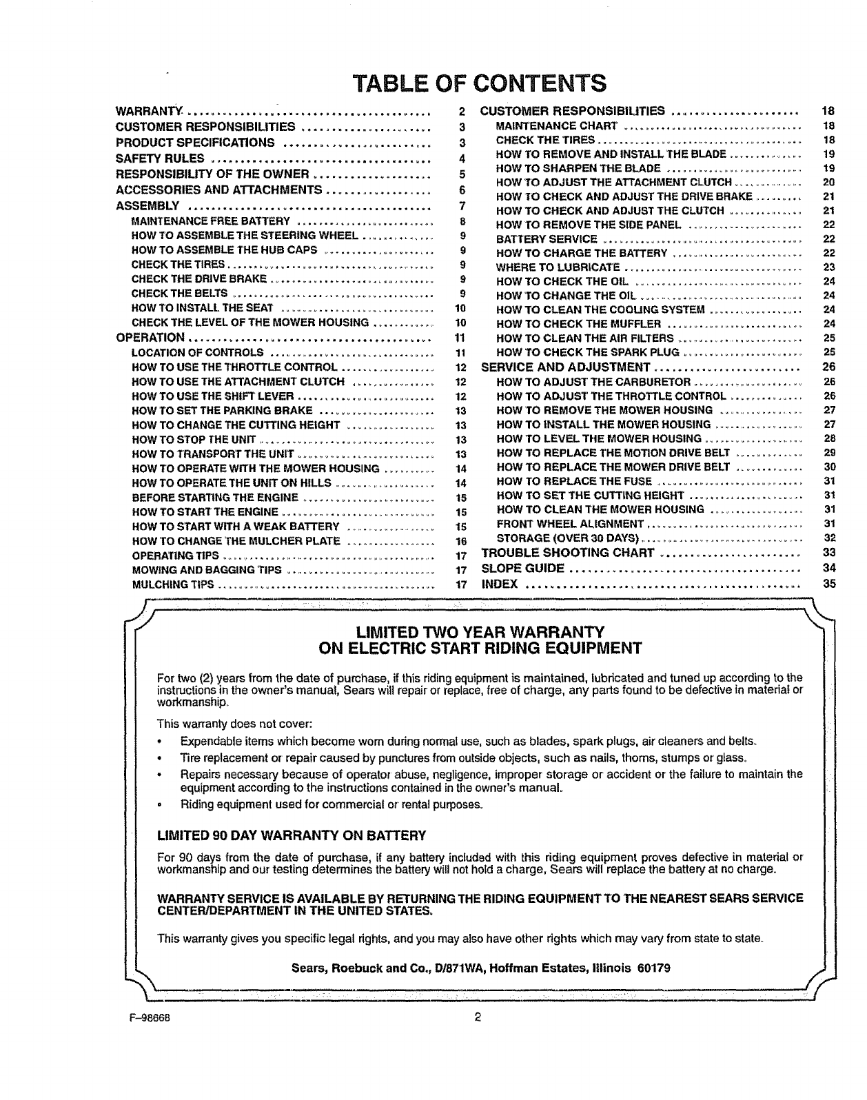 F-98668 Sears, Roebuck and Co., Hoffman Estates, |L. 60179 U.S.A. PrintedinUS_A.