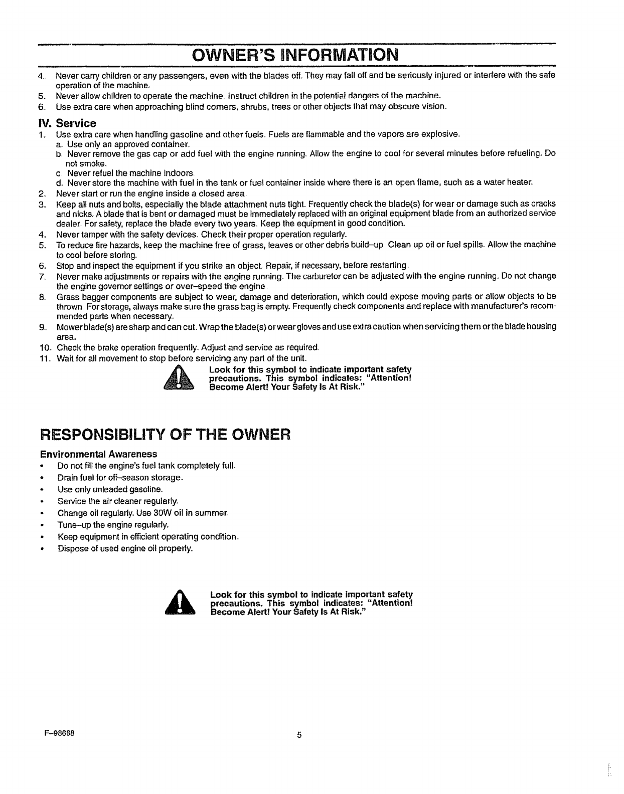 RESPONSIBILITY OF THE OWNER ....................