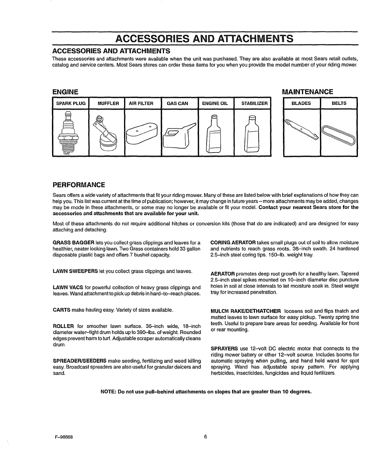 ACCESSORIES AND ATTACHMENTS ..................