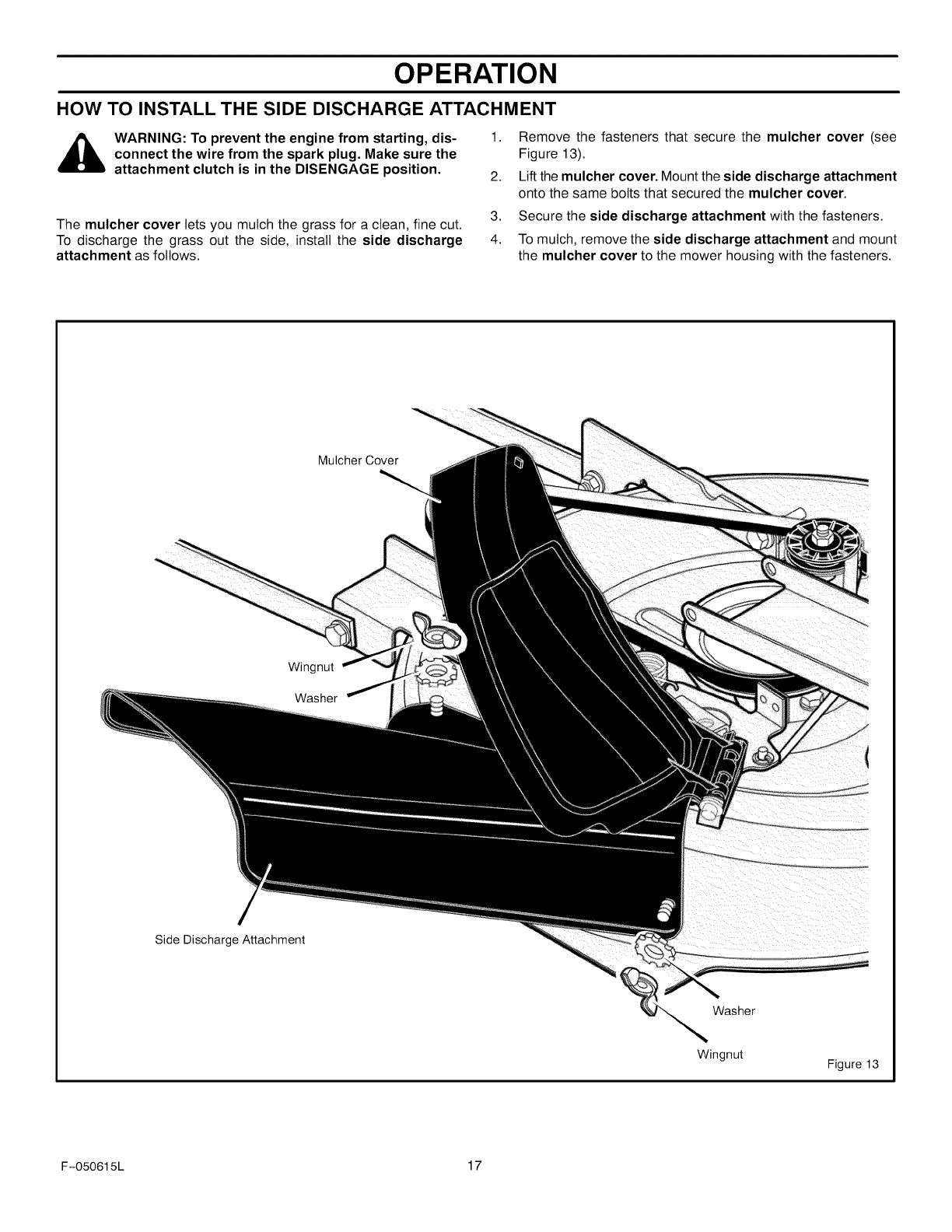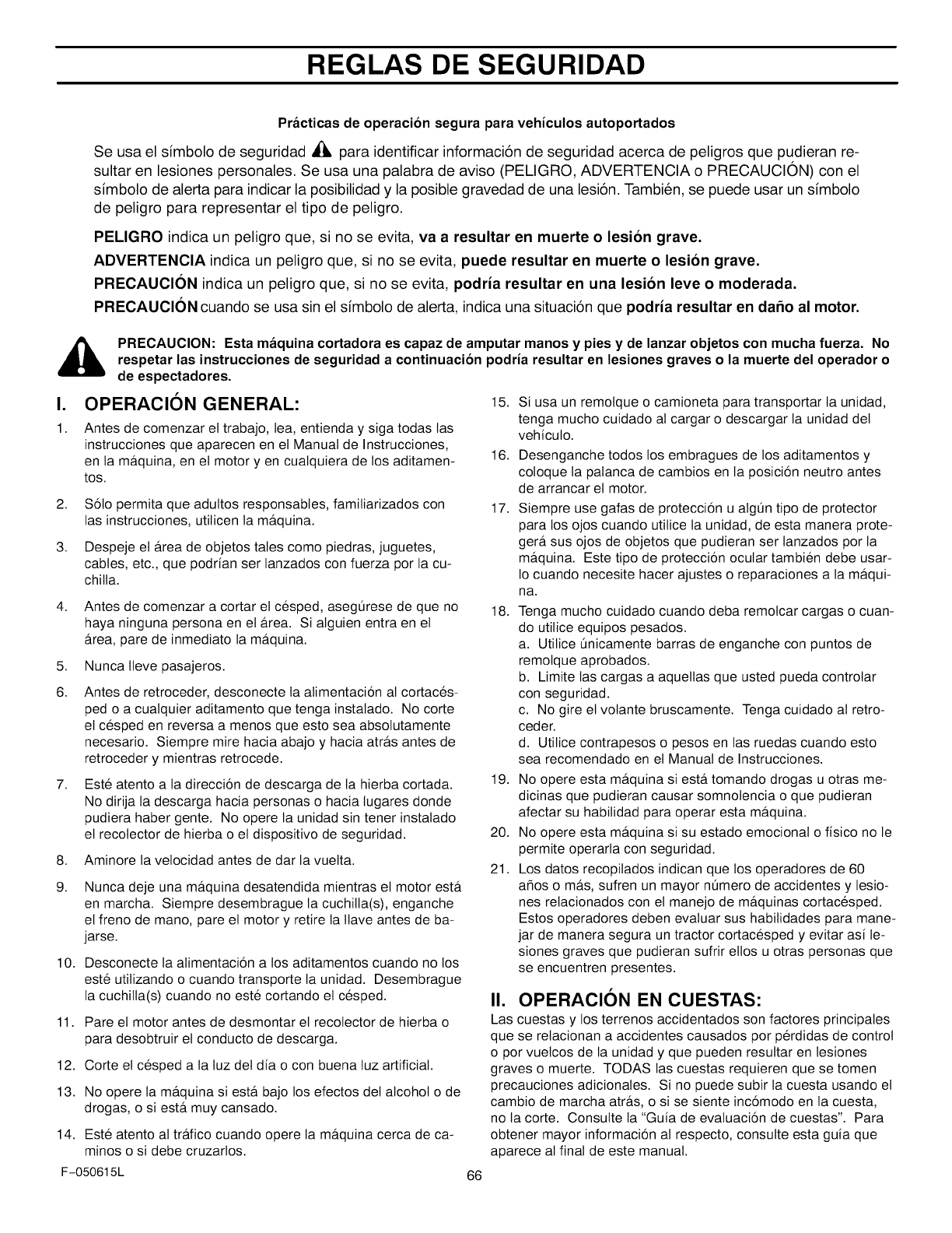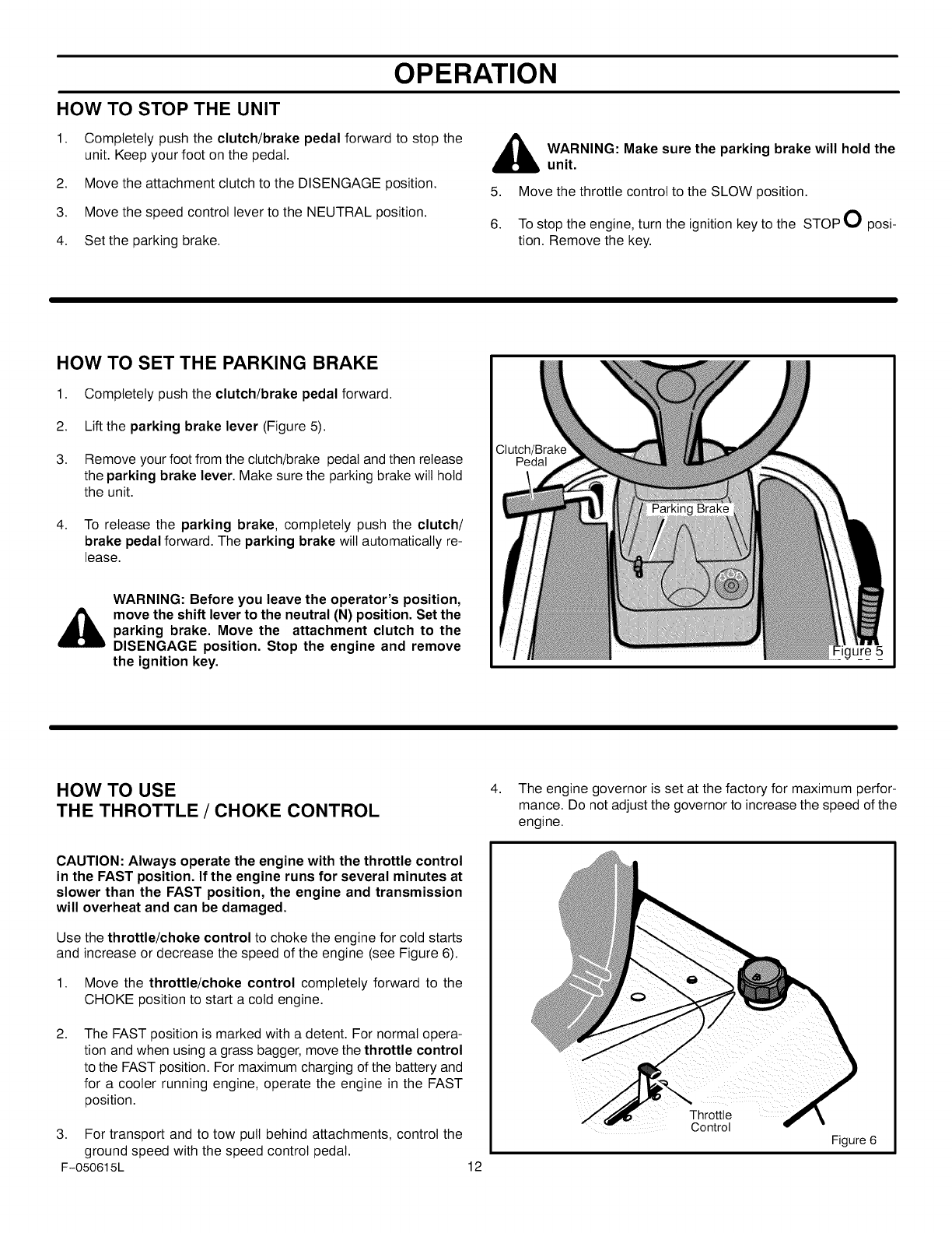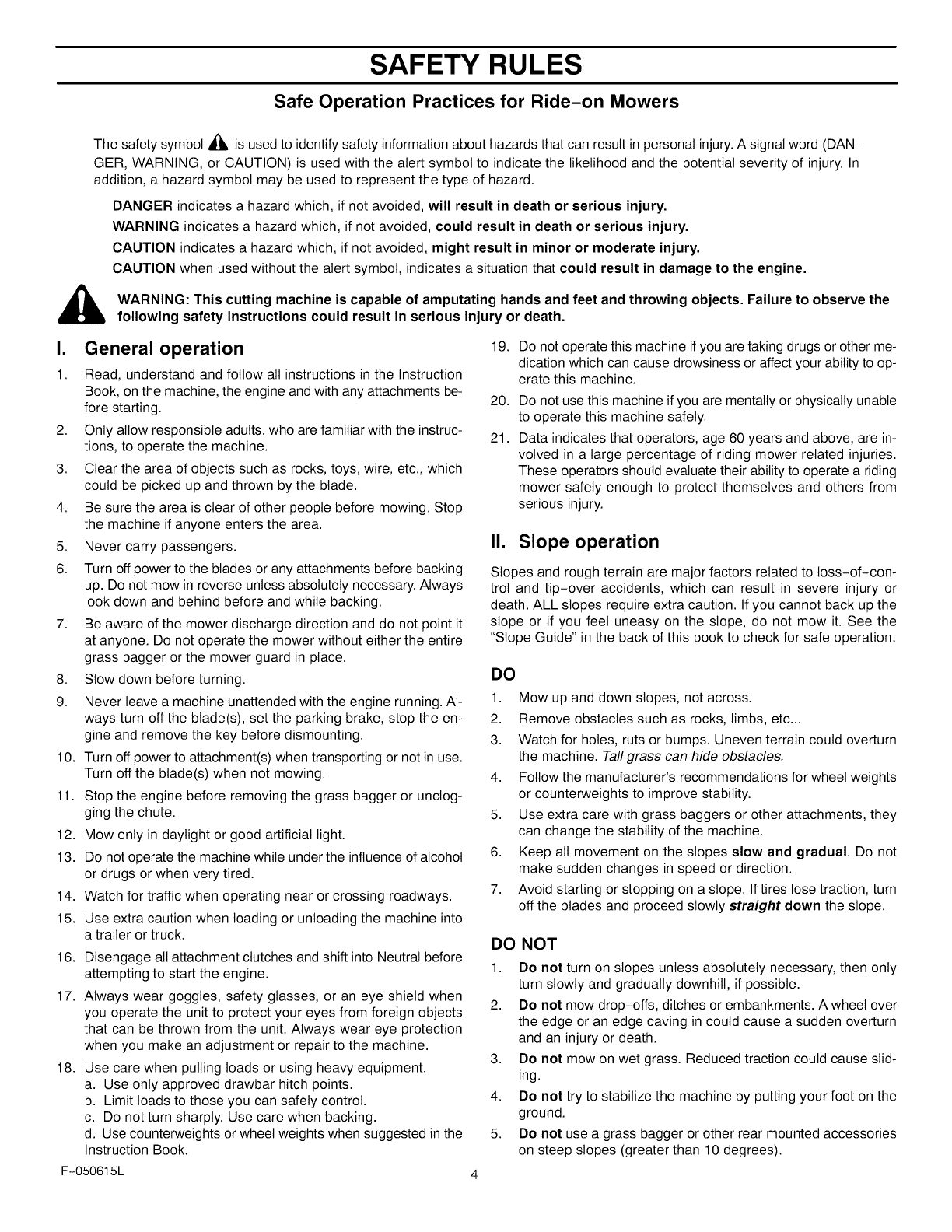capability of the riding equipment, impacting objects that bend the frame or crankshaft, or over-speeding the engine.