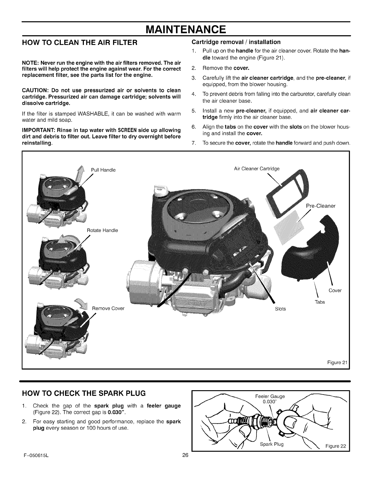 debris, or failure to maintain the equipment according to the instructions contained in the owner's manual.