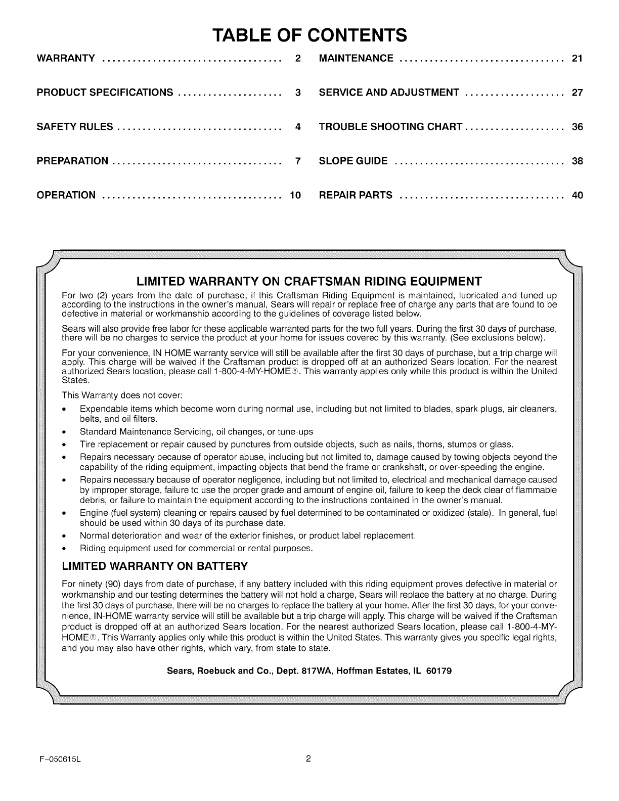 OPERATION .................................... 10 REPAIR PARTS ................................. 40