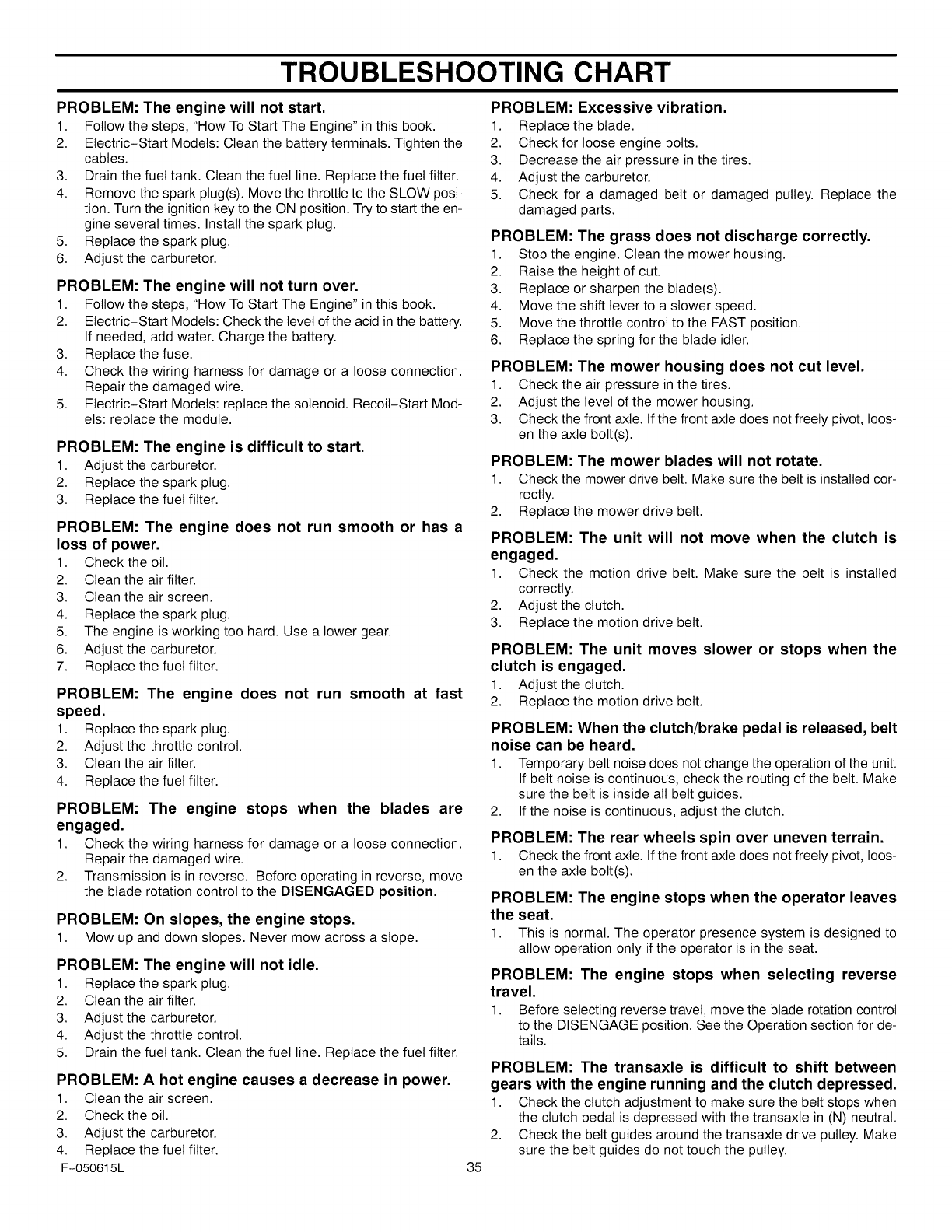 SAFETY RULES ................................. 4 TROUBLE SHOOTING CHART .................... 36