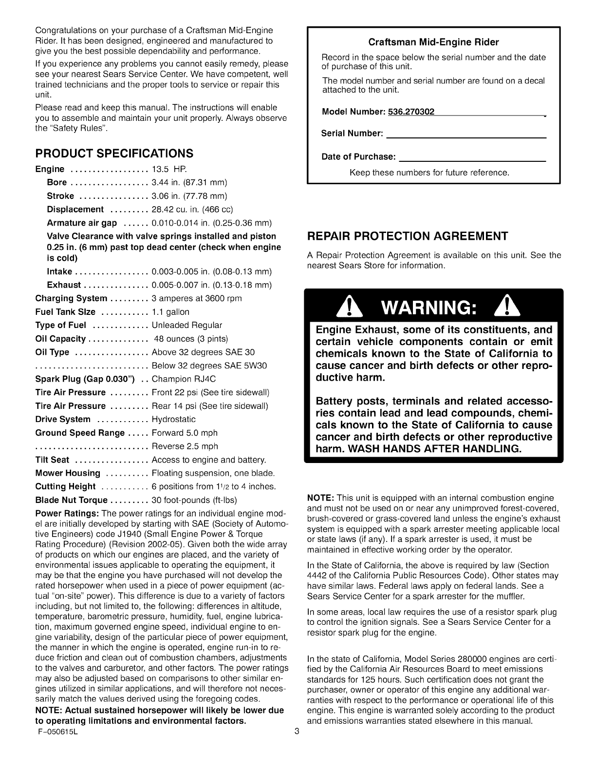 Congratulations on your purchase of a Craftsman Mid-Engine