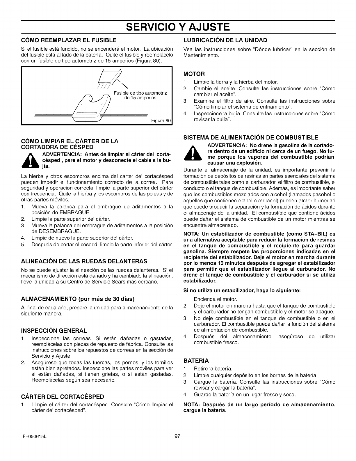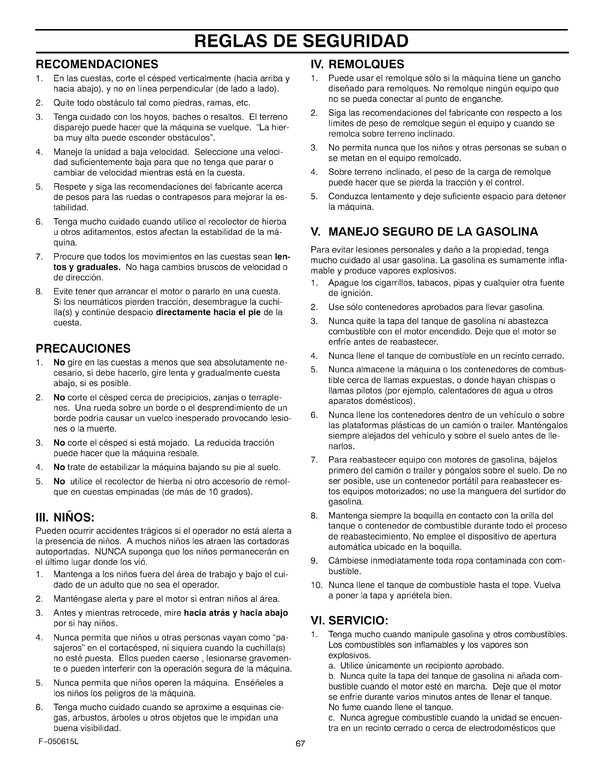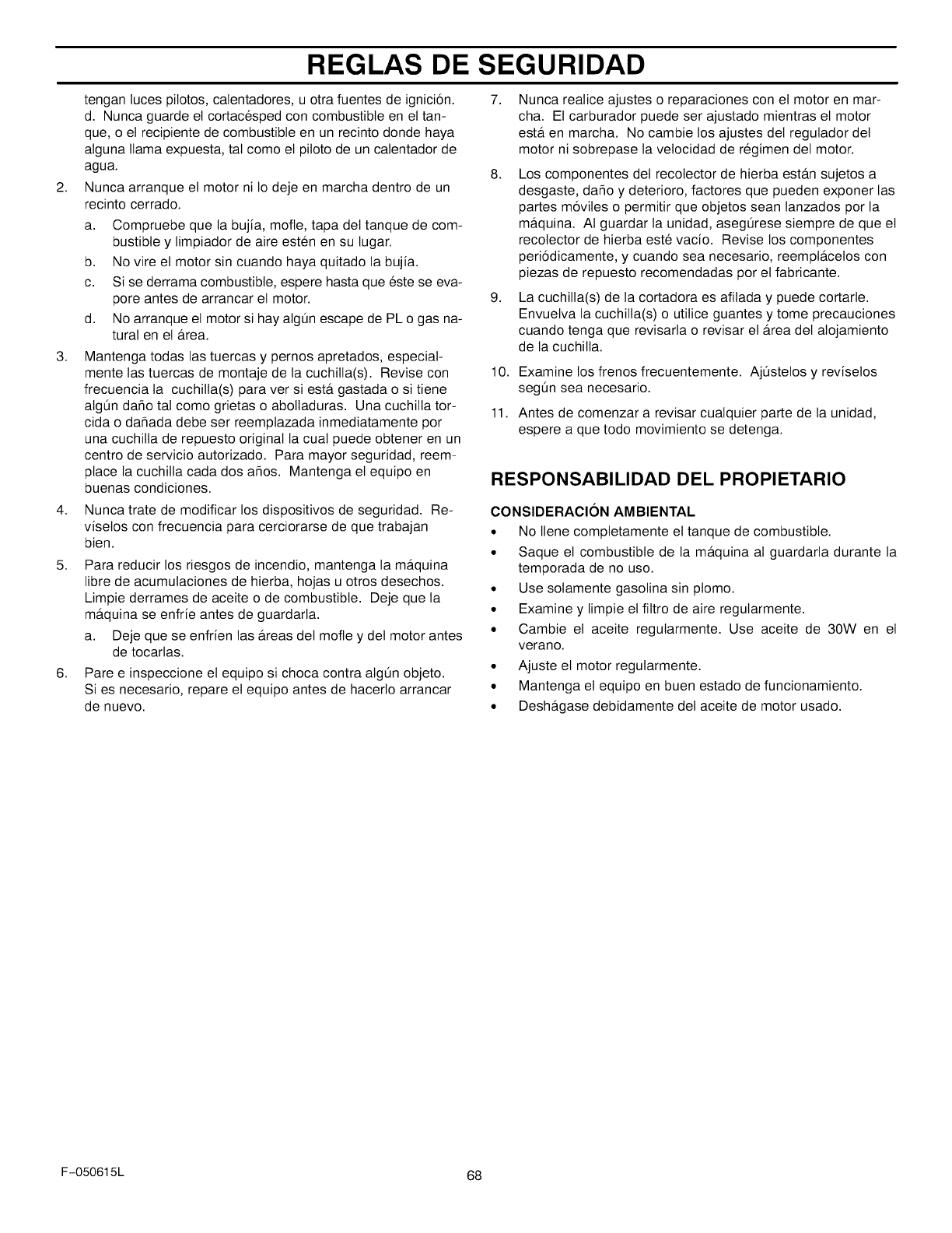 by improper storage, failure to use the proper grade and amount of engine oil, failure to keep the deck clear of flammable