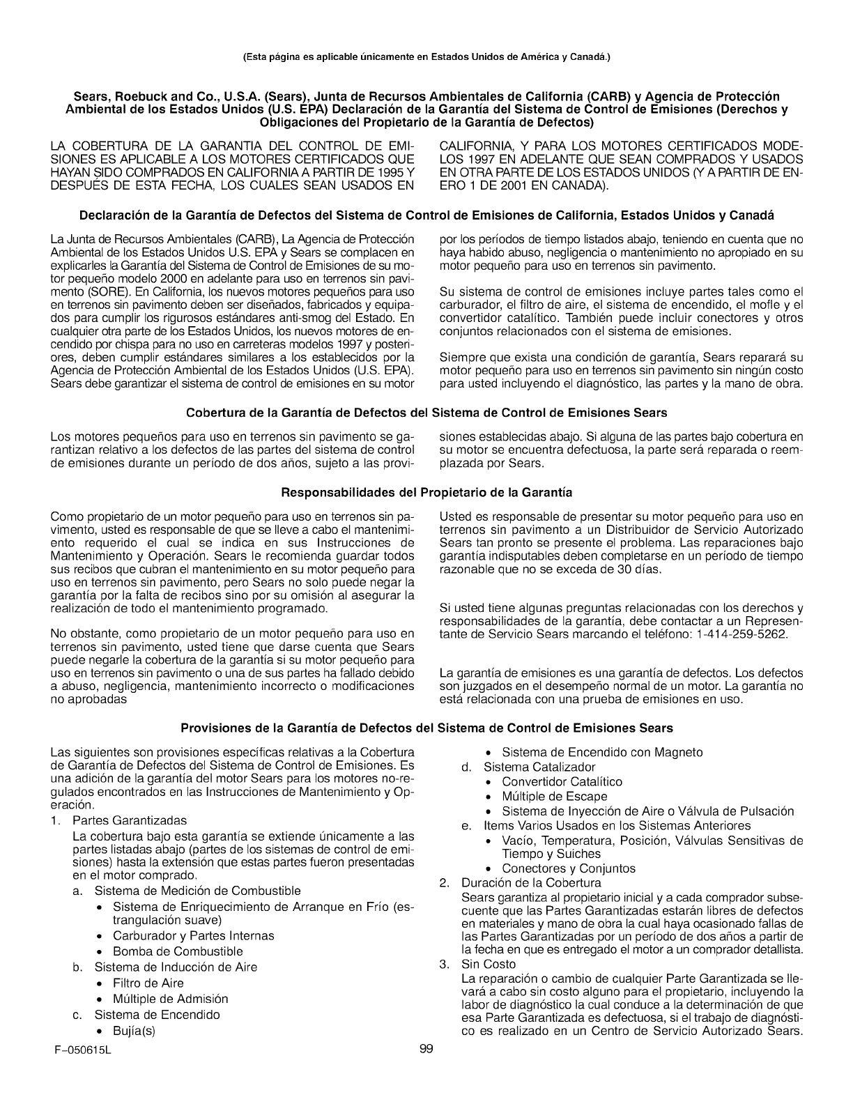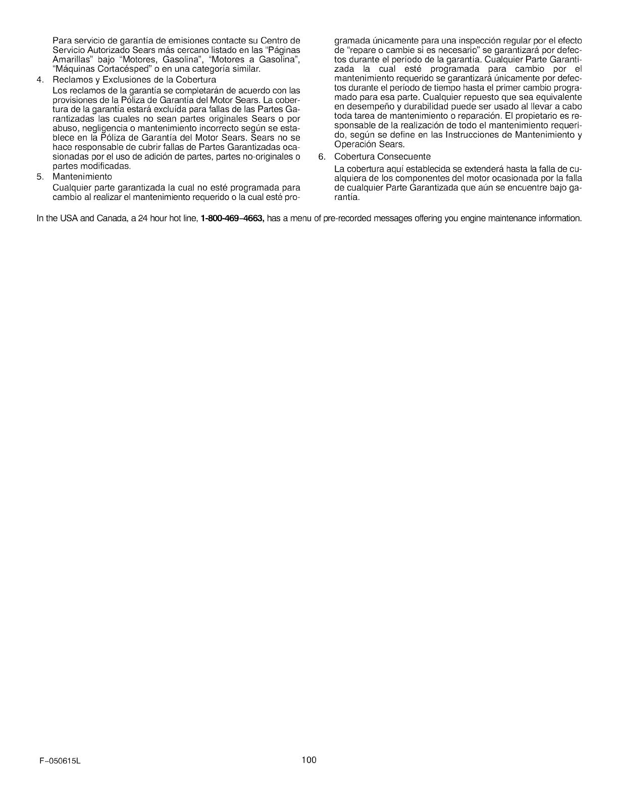 workmanship and our testing determines the battery will not hold a charge, Sears will replace the battery at no charge. During
