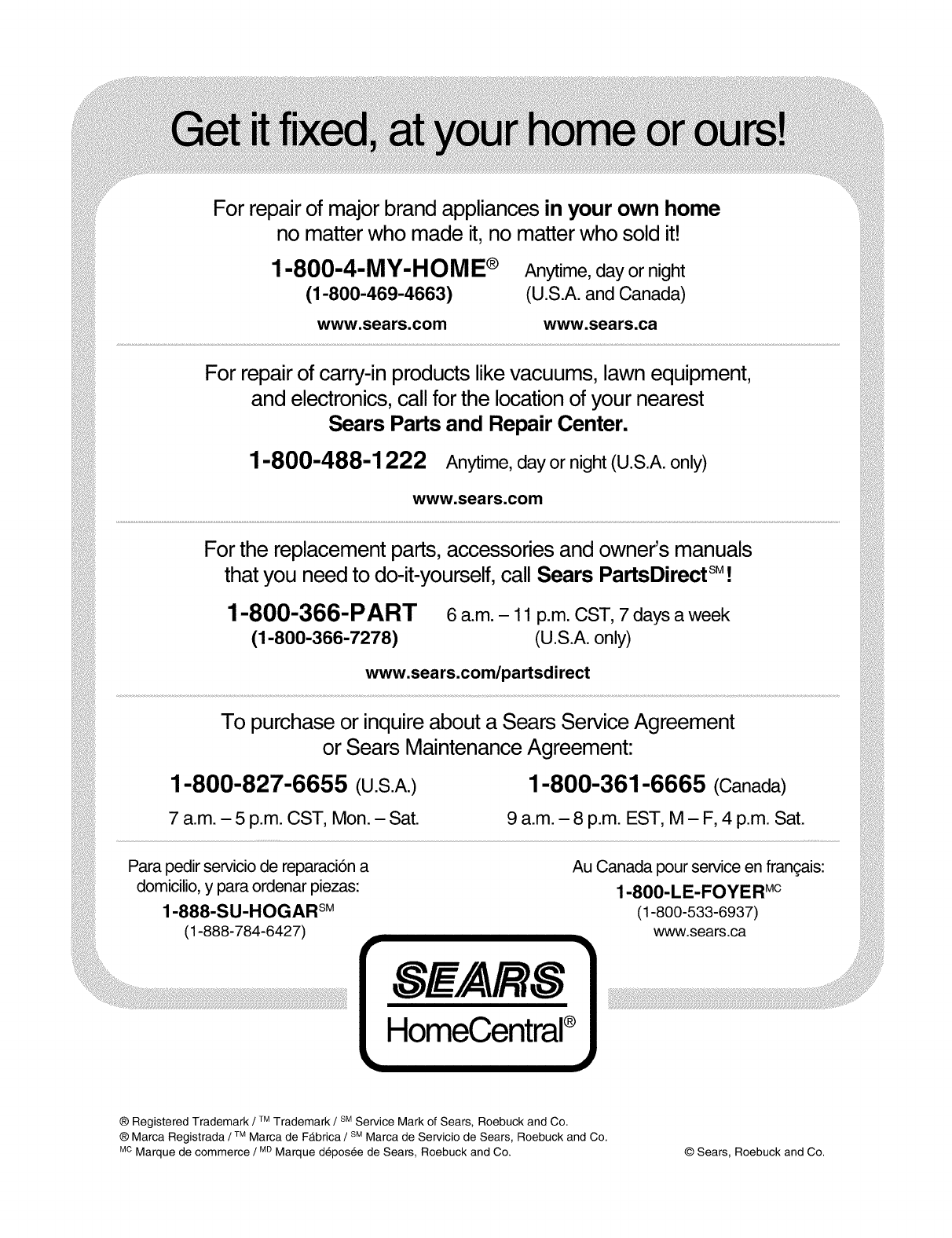 ® Marca Registrada /Marca de F_,brica/SMMarca de Servicio de Sears, Roebuck and Co.