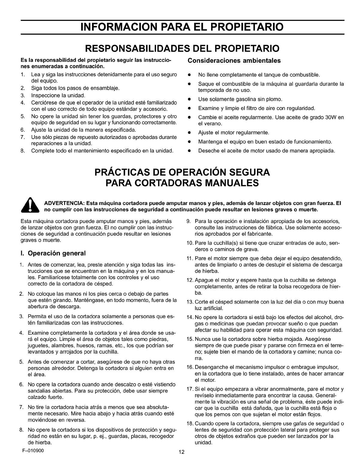 It is the owner's responsibility to follow the instructions be-