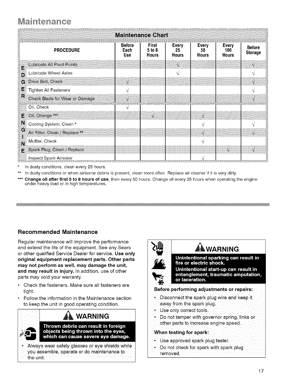 Recommended Maintenance .............. 17