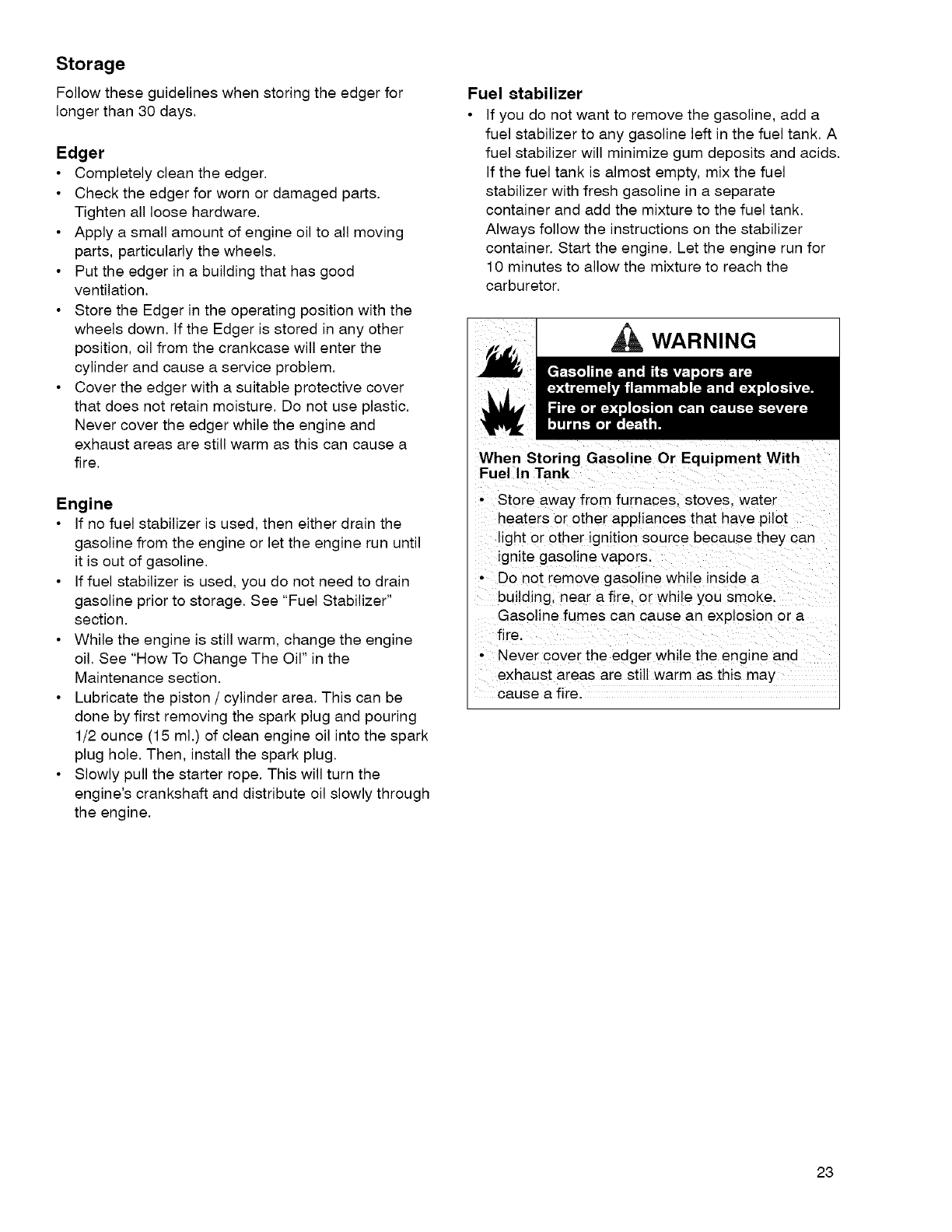 Storage ................................. 23